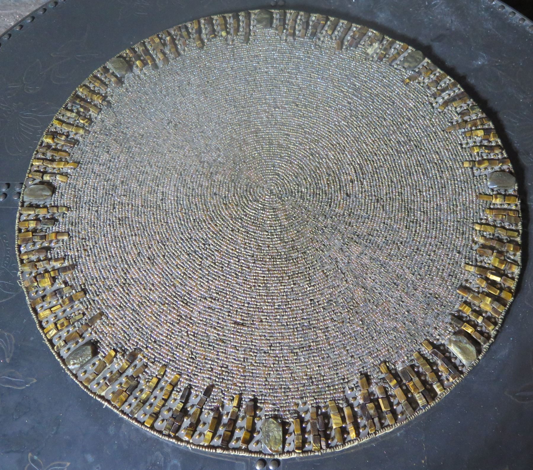 Kim Seyberto Round Glass Bead Mat w/ Sequin & Stone Trim 15" dia