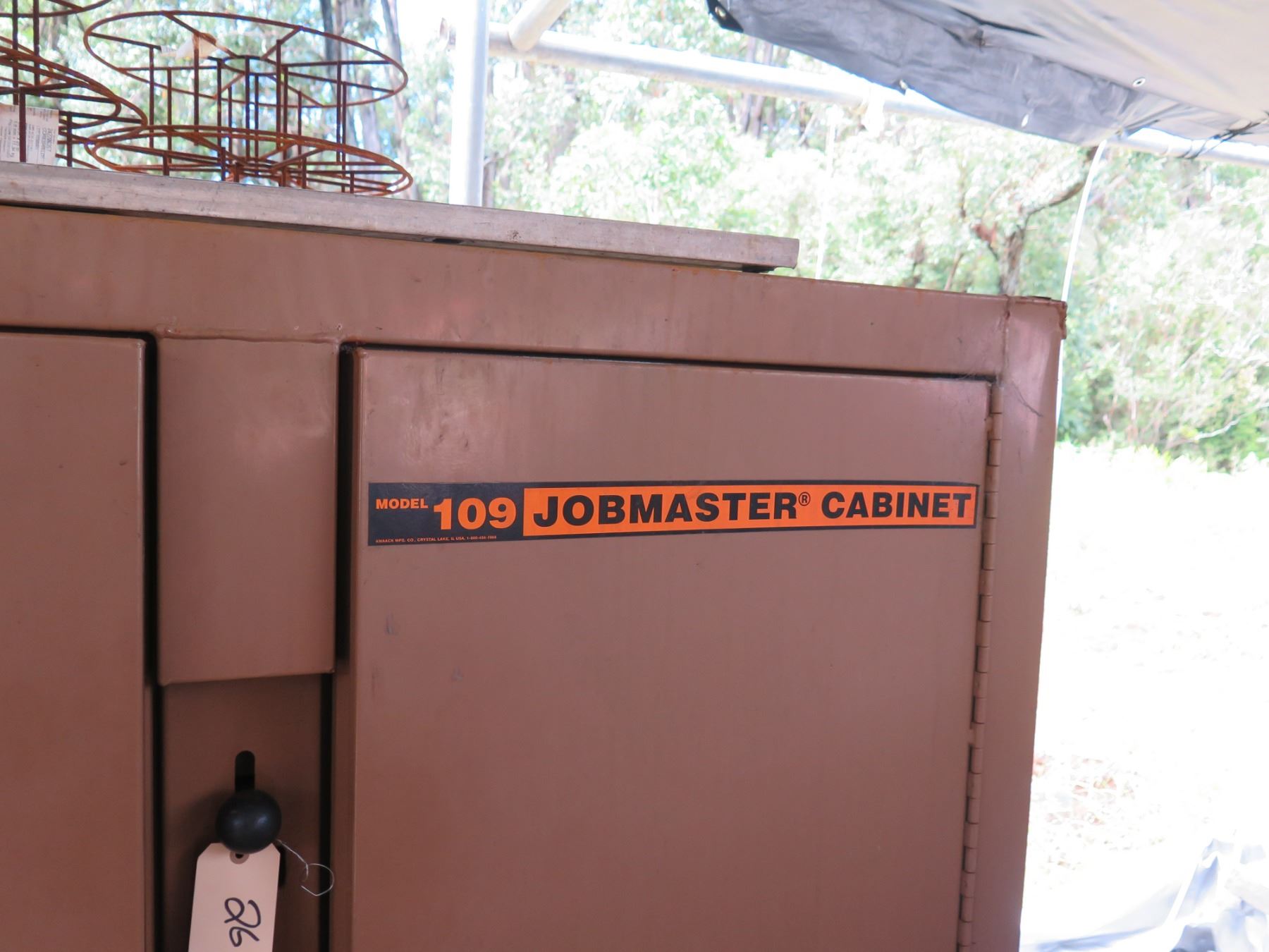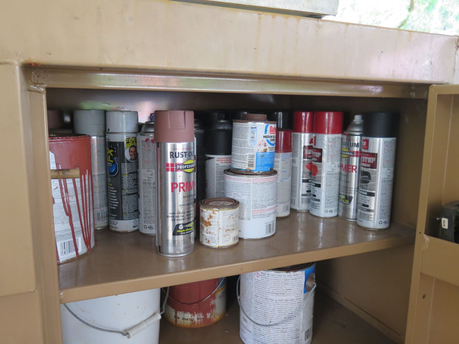 Knaack Jobmaster Cabinet 109 w/ 2 Doors, 6 Inside Shelves & Misc Tools & Paint