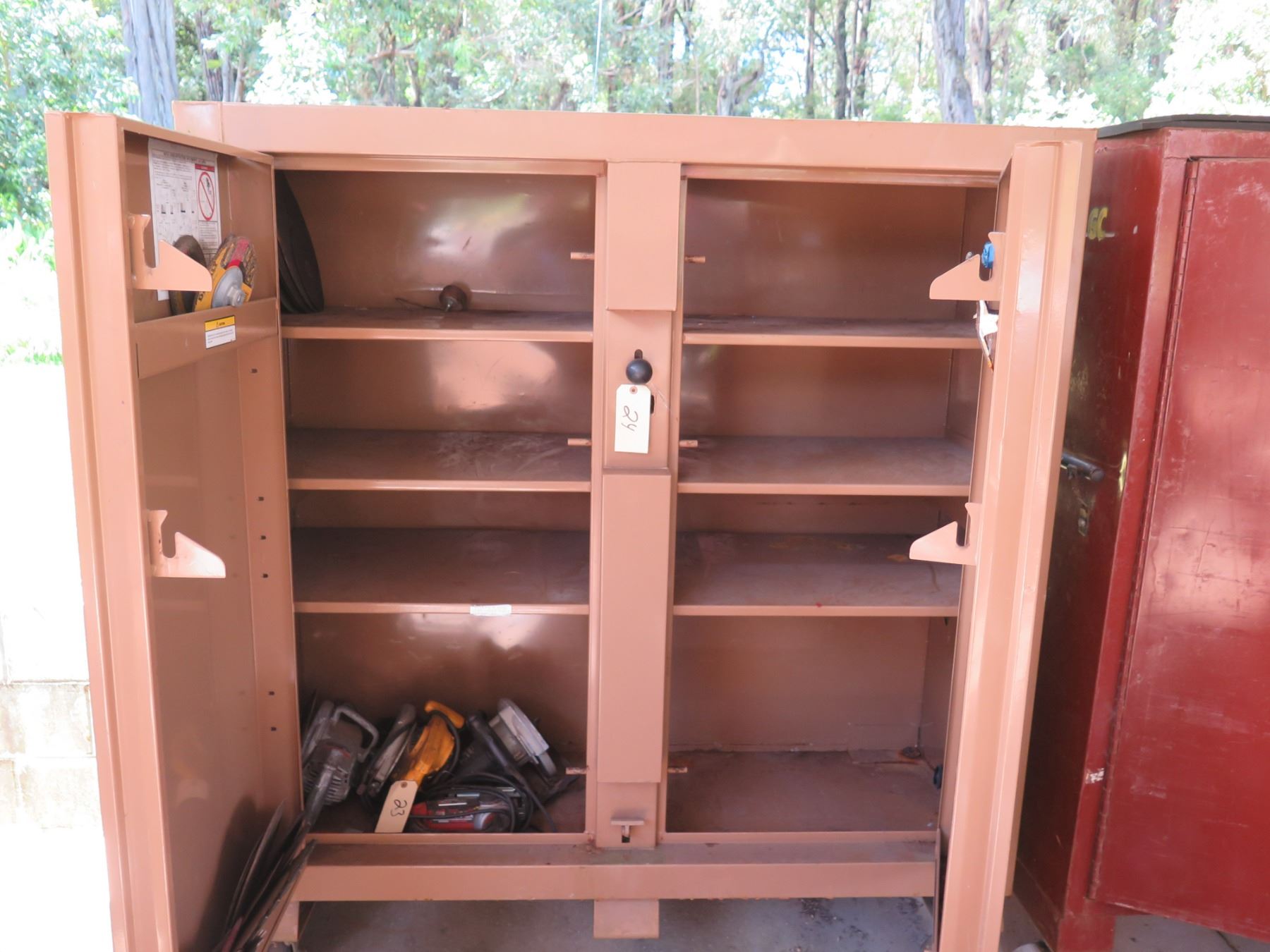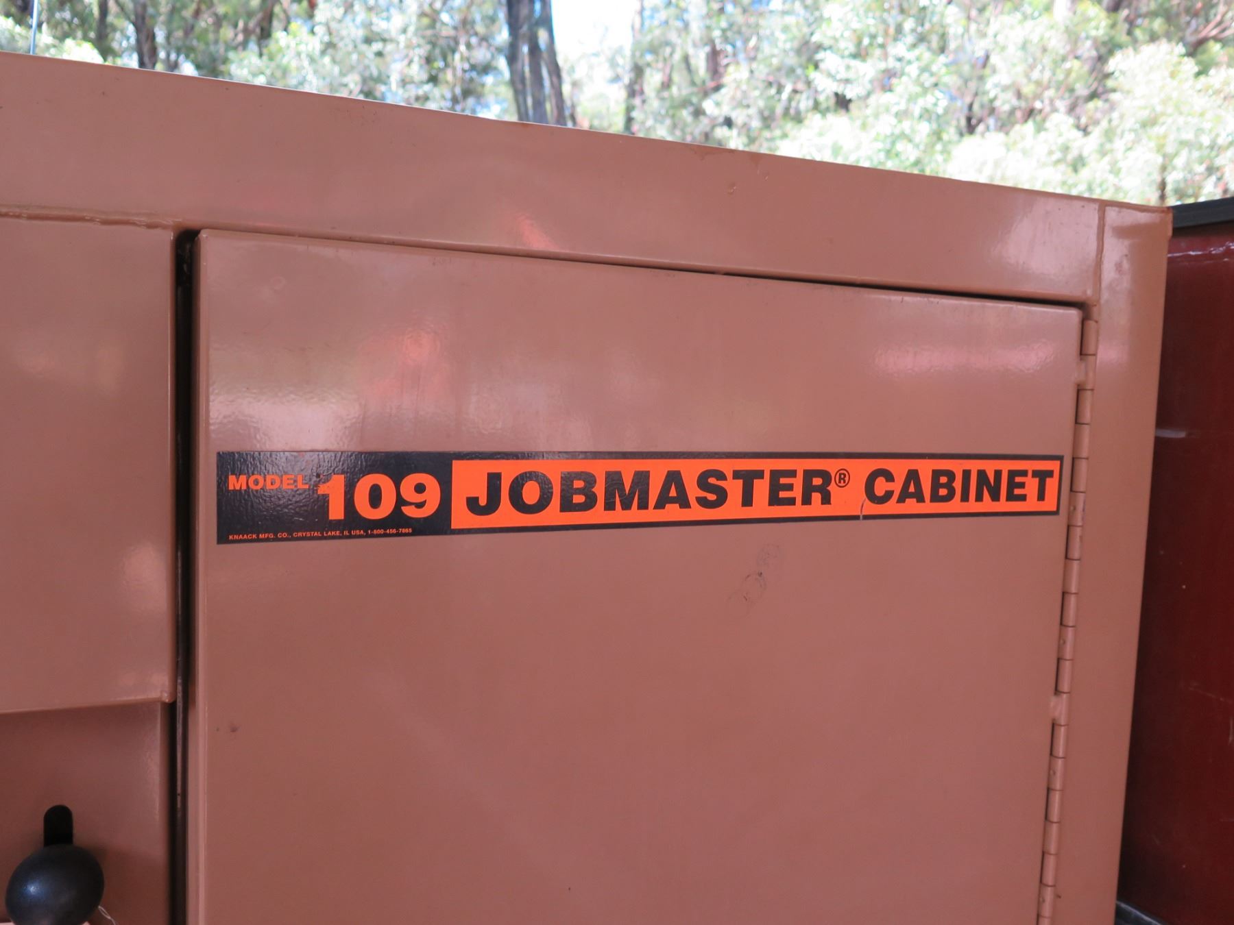 Knaack Jobmaster Cabinet 109 w/ 2 Doors, 8 Inside Shelves & Misc Tools