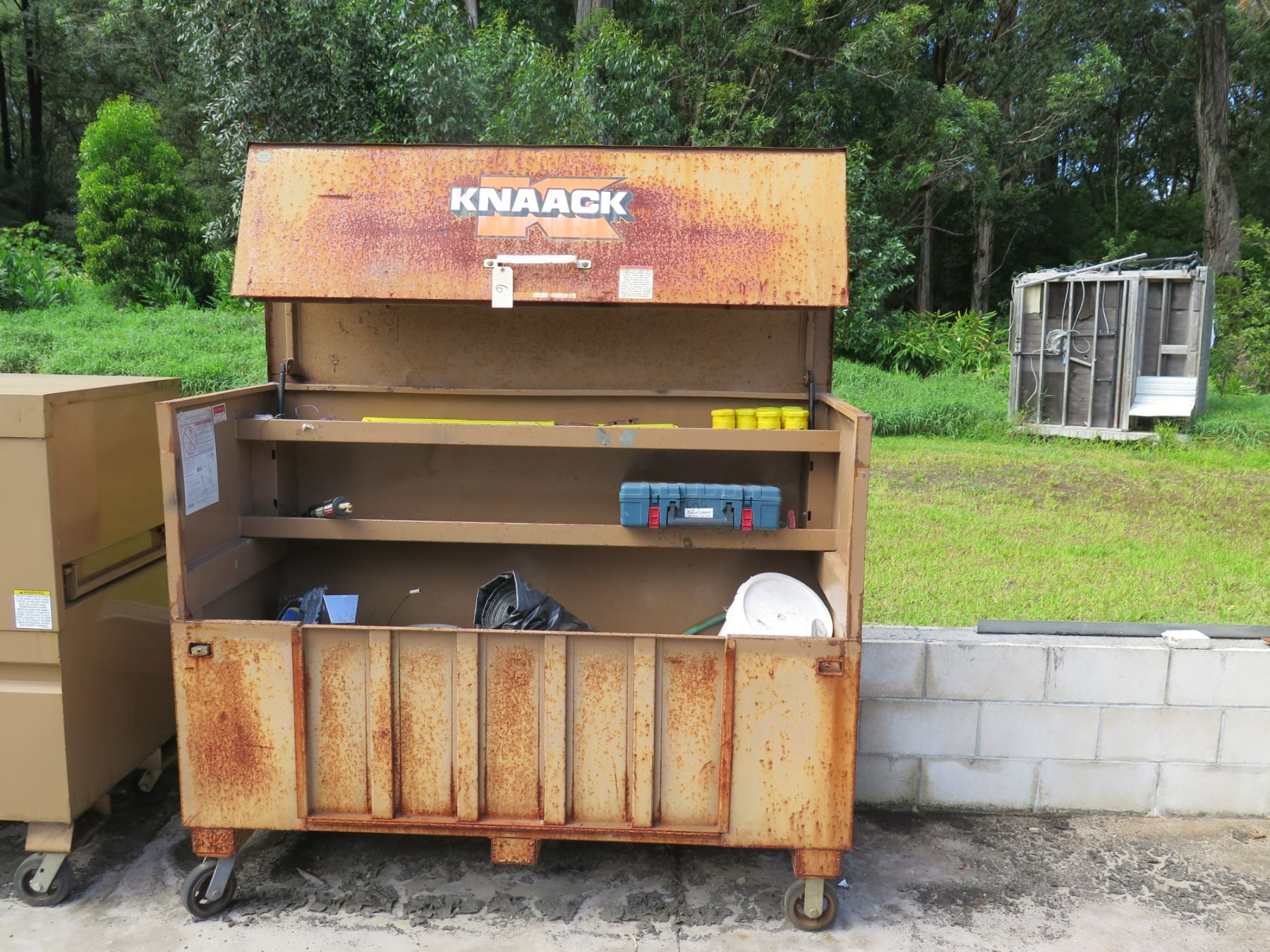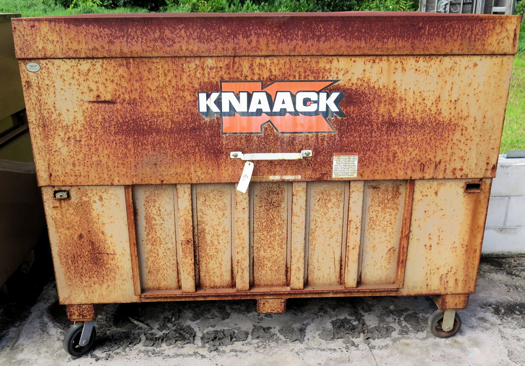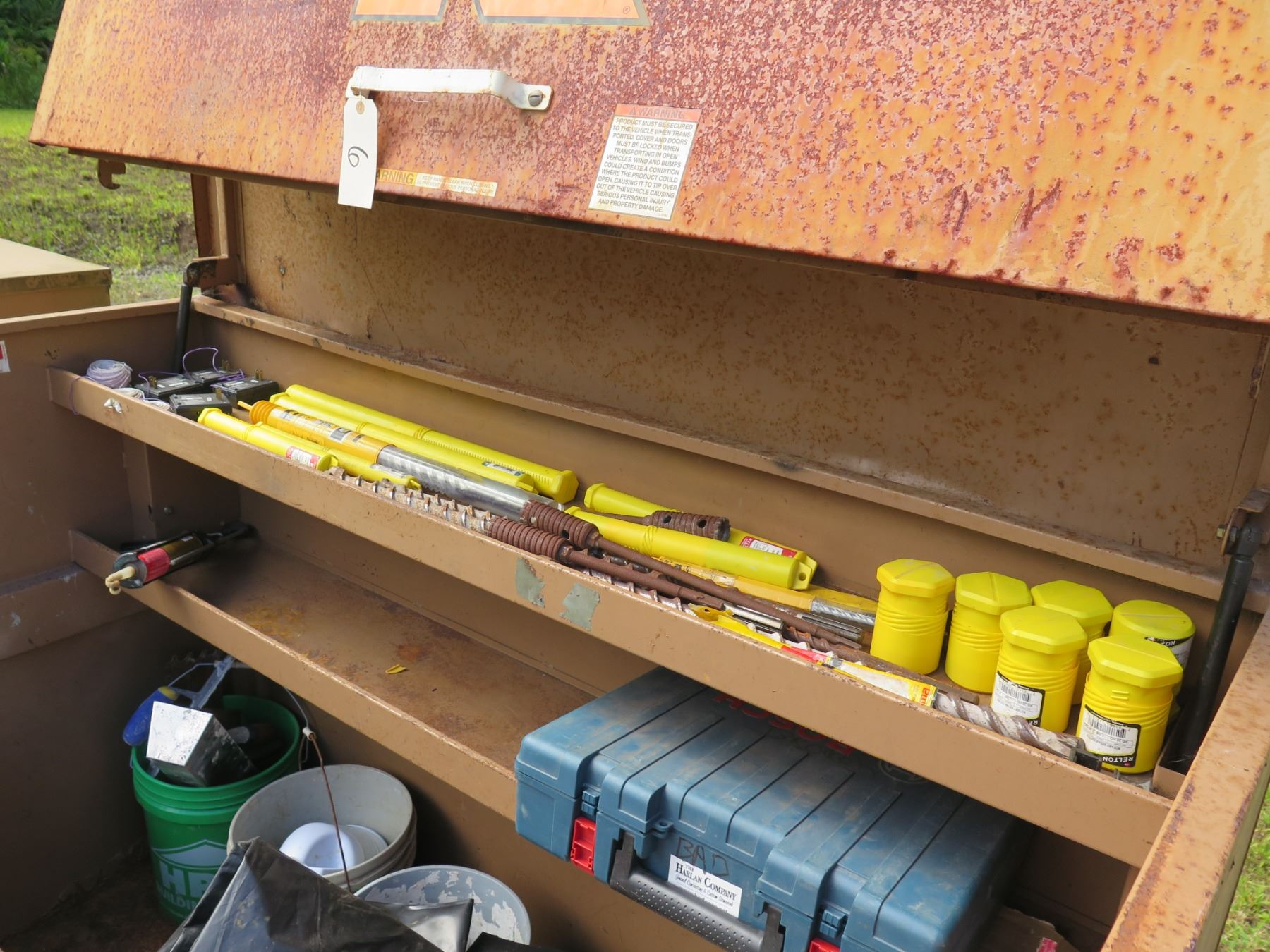 Knaack Rolling Tool Box w/ Contents: Delineators, Wire, Tools, etc