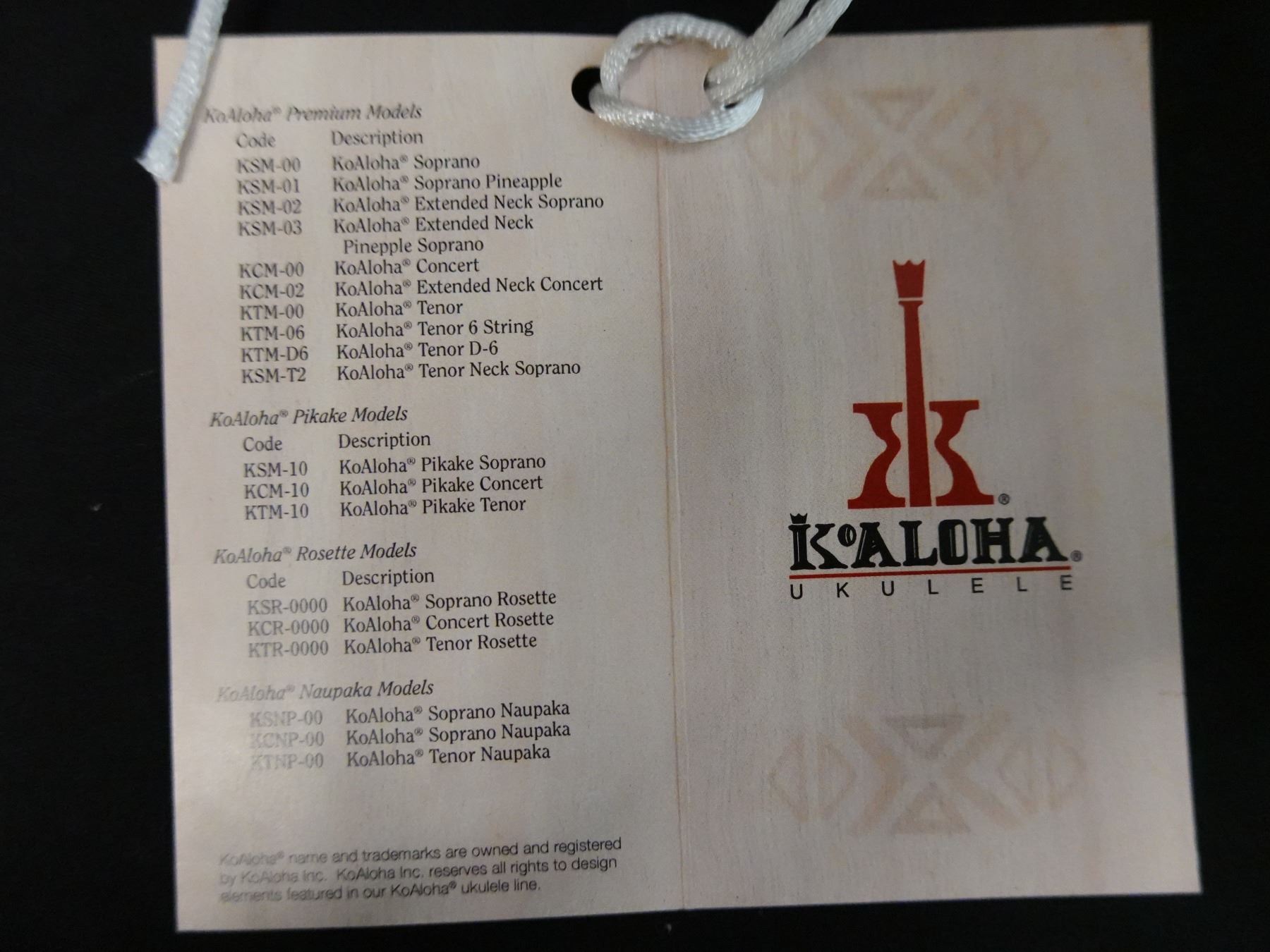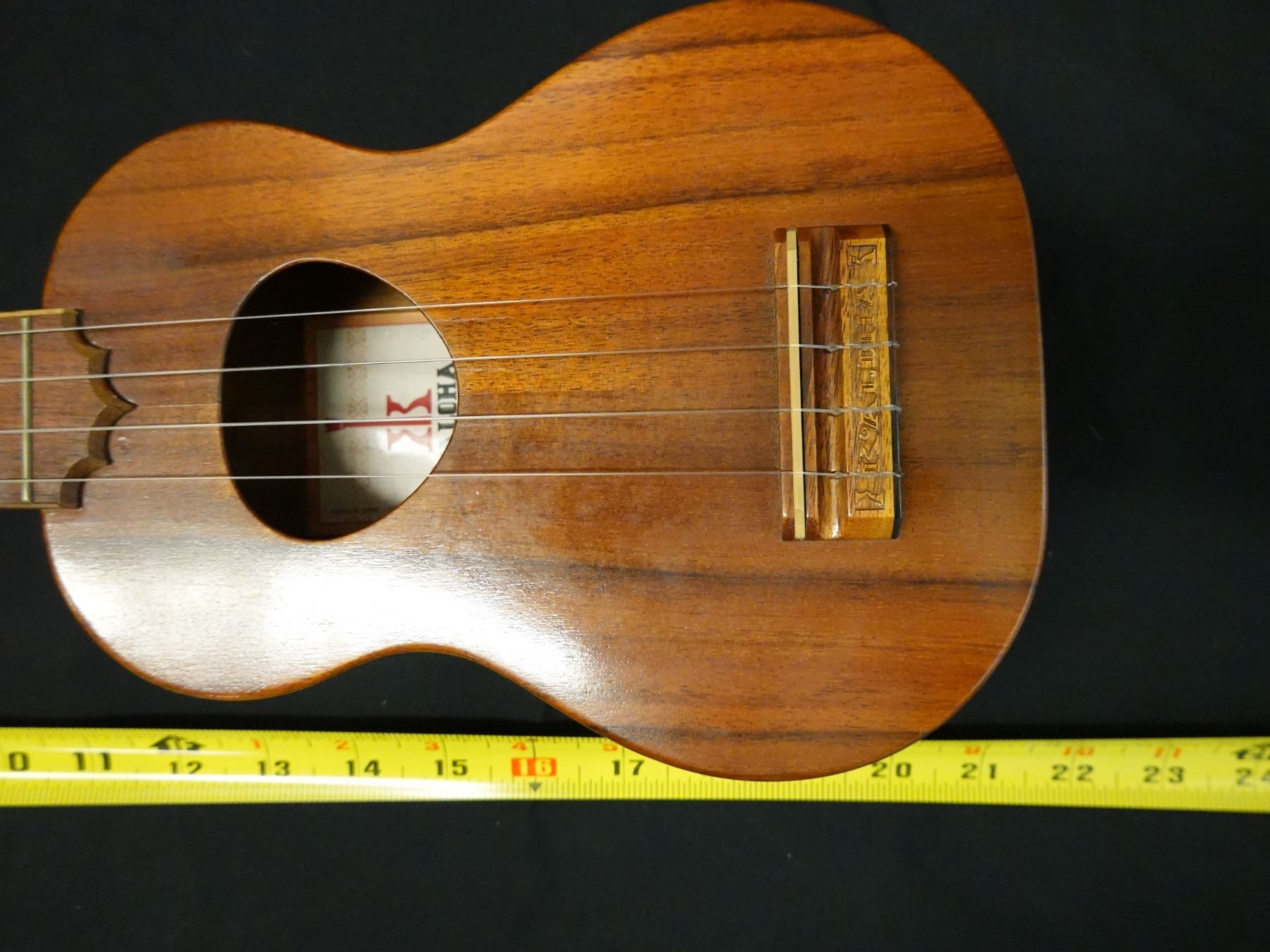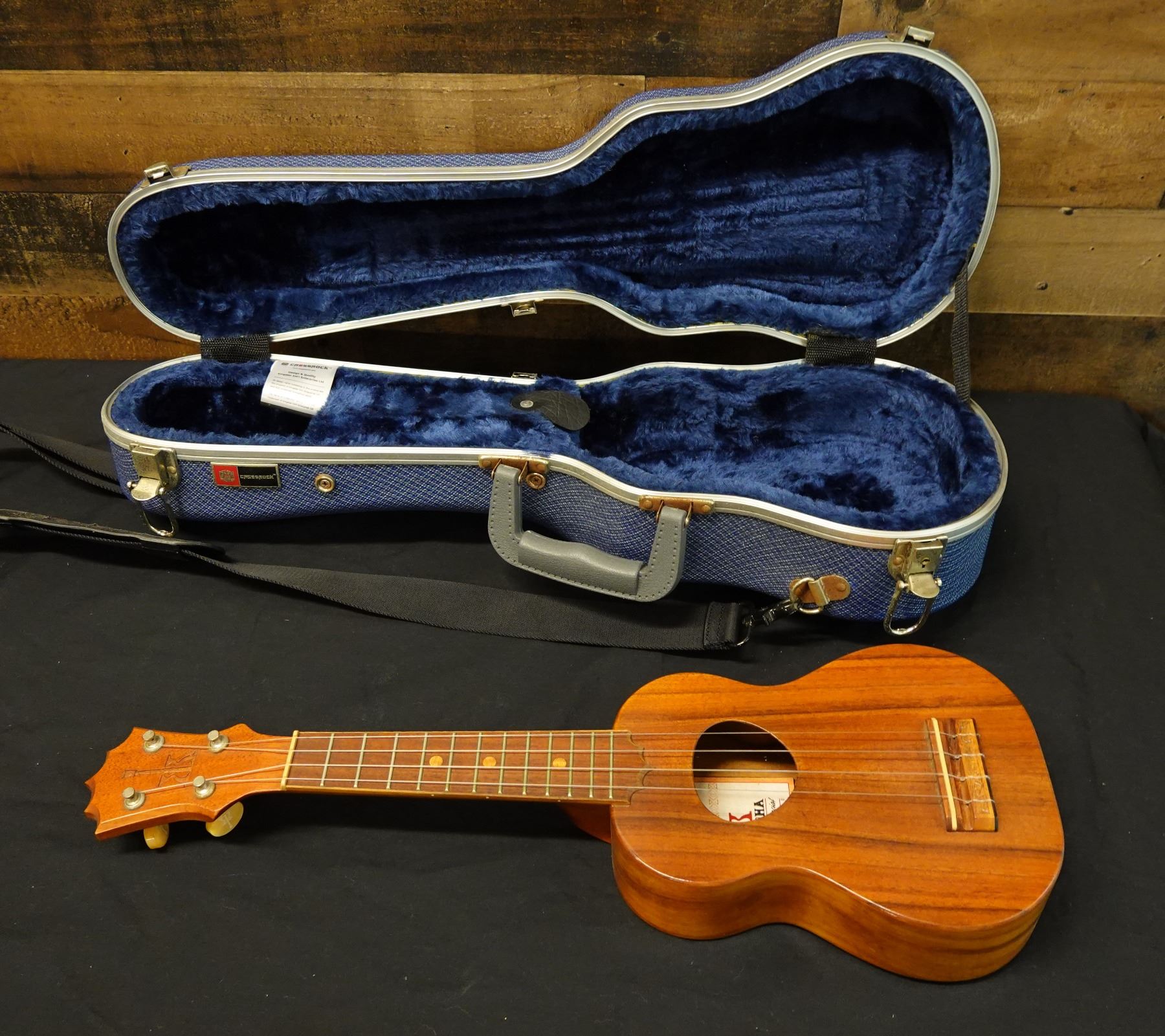 Seller reports the KoAloha koa soprano ukulele is as fine an uke as has ever been produced. Made locally in Honolulu, every one is a work of pure craftsmanship. Absolutely wonderful sound and a pleasure to play, there is a reason they are premium ukuleles. This factory special features an interesting engraved fitting with the KoAloha moniker on the face. This lot includes a deluxe hardside case.