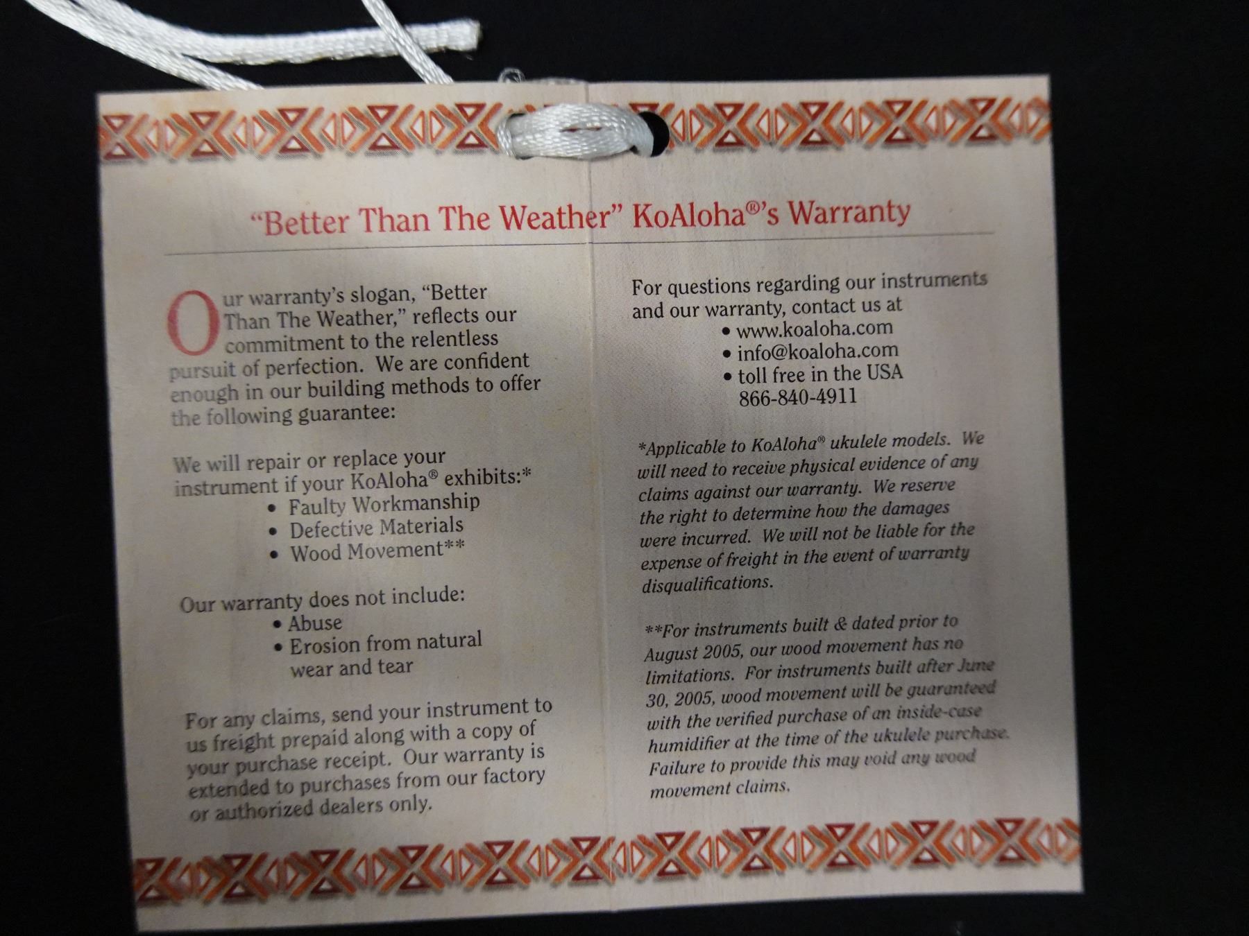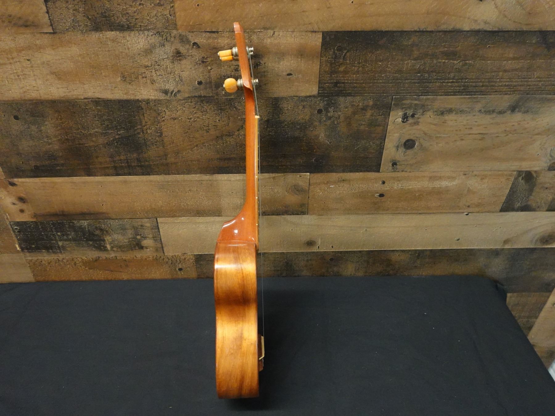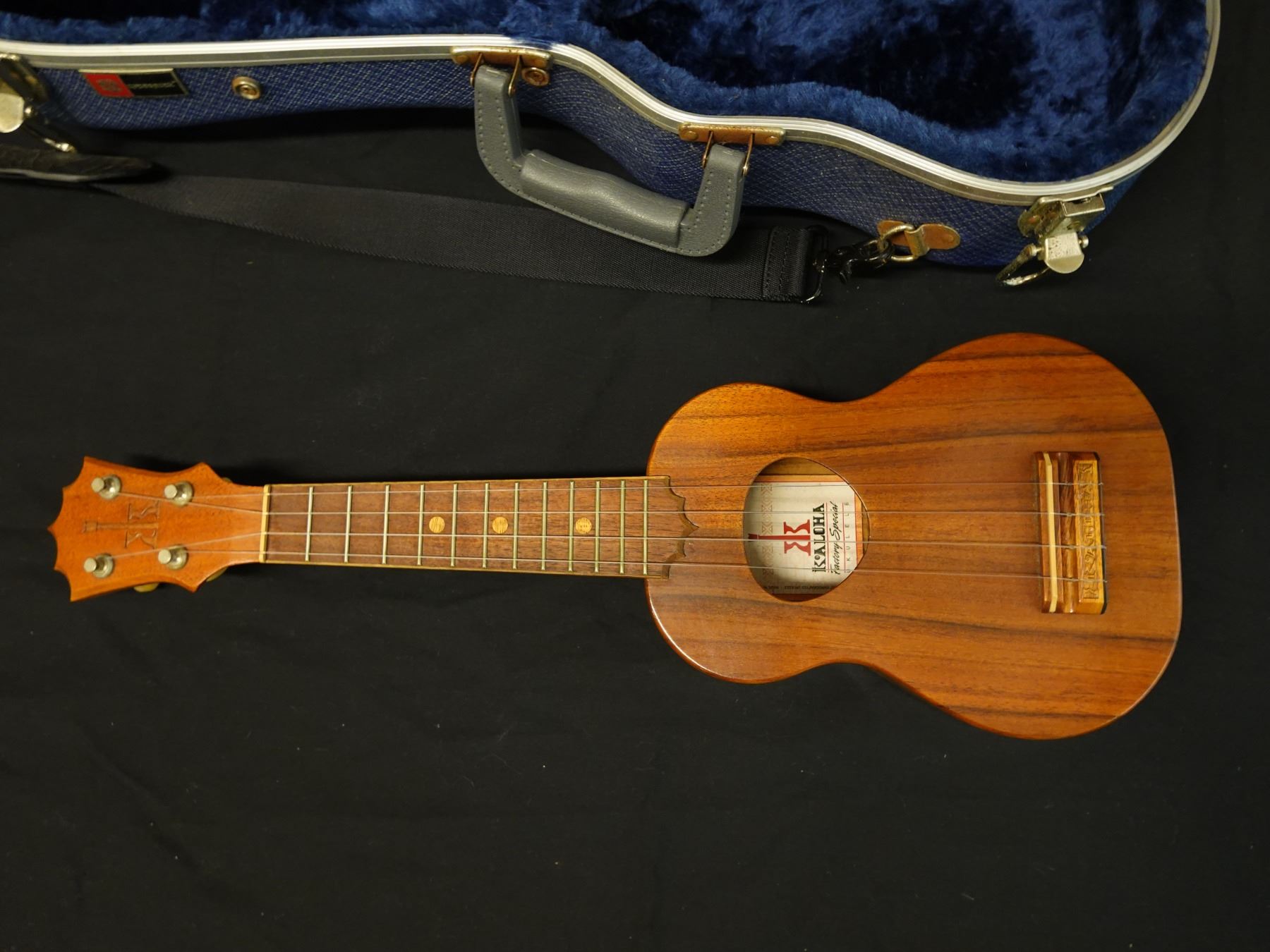 Seller reports the KoAloha koa soprano ukulele is as fine an uke as has ever been produced. Made locally in Honolulu, every one is a work of pure craftsmanship. Absolutely wonderful sound and a pleasure to play, there is a reason they are premium ukuleles. This factory special features an interesting engraved fitting with the KoAloha moniker on the face. This lot includes a deluxe hardside case.