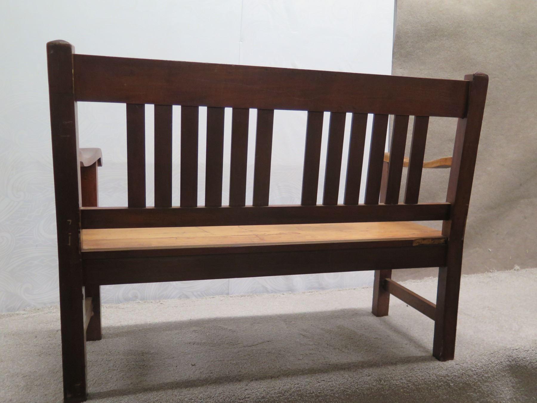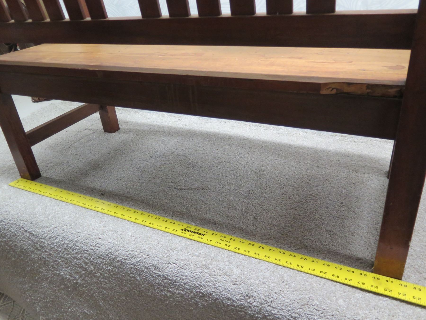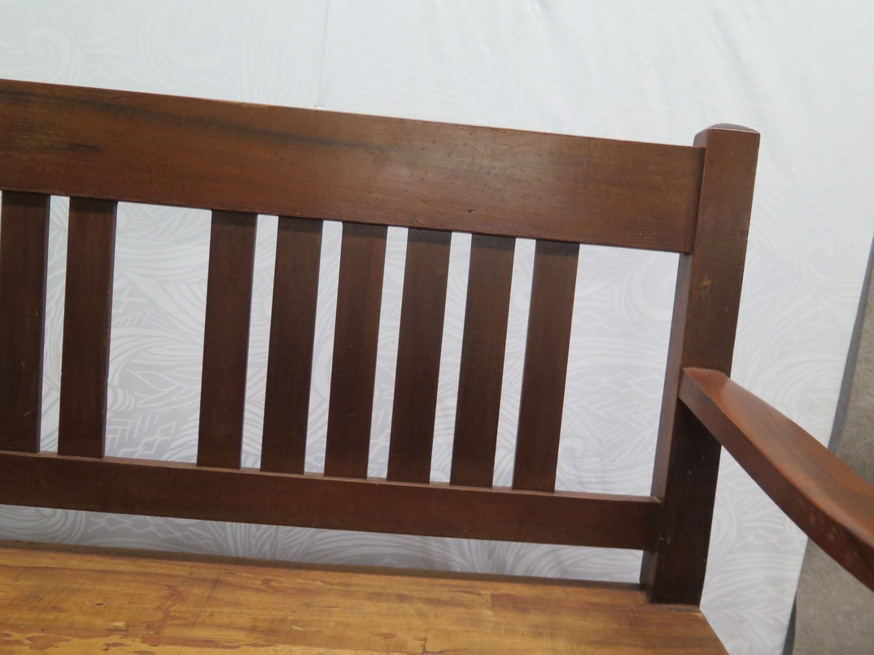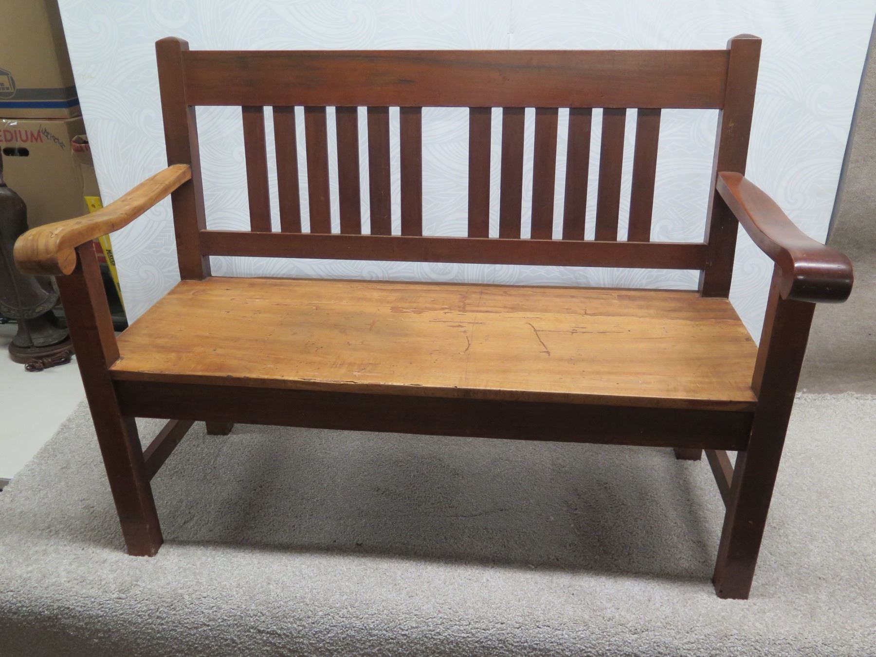 Koa Wood Bench w/ Arms & Slatted Back 48"x18"x36"H (needs repair & refinishing)