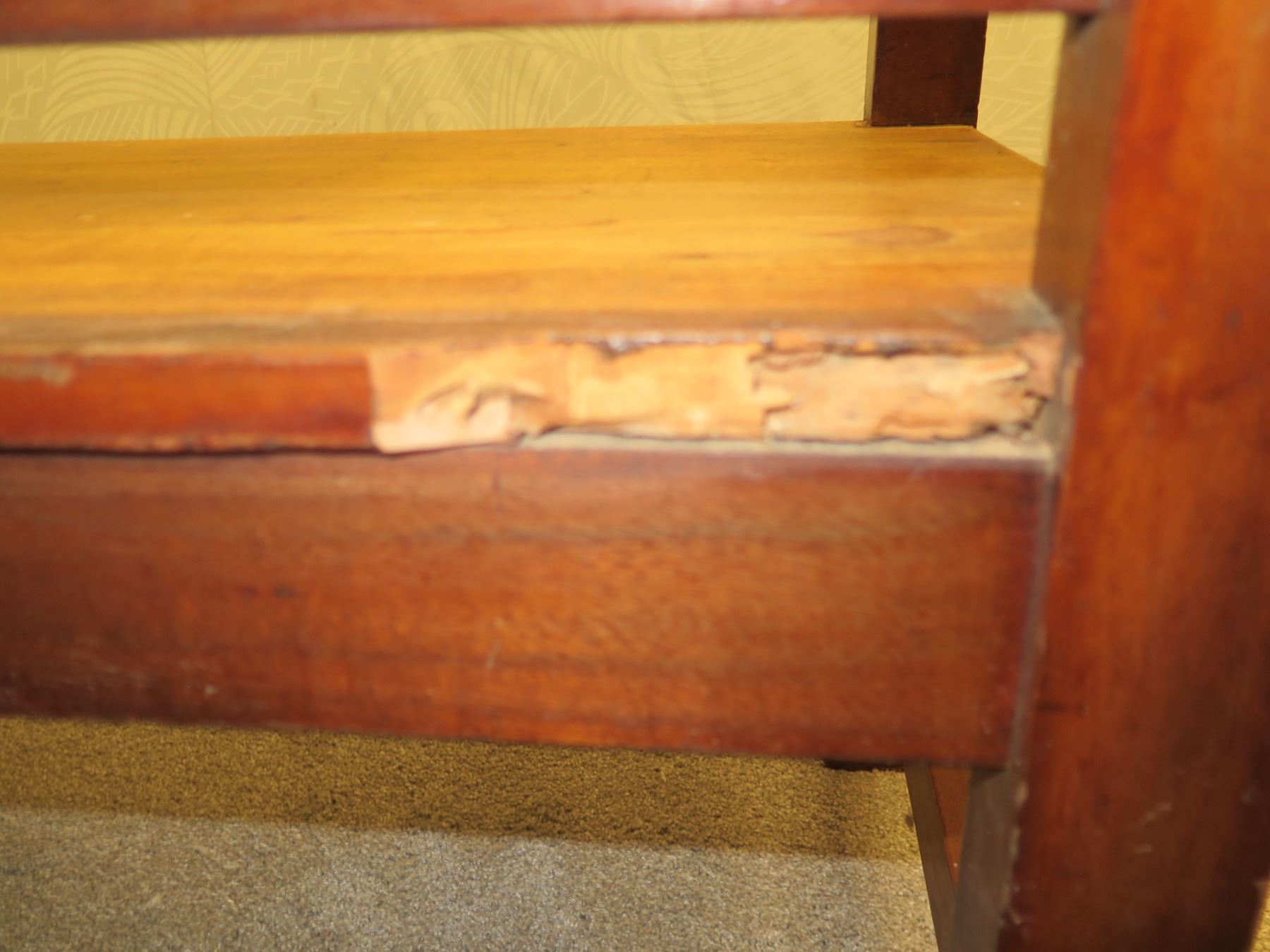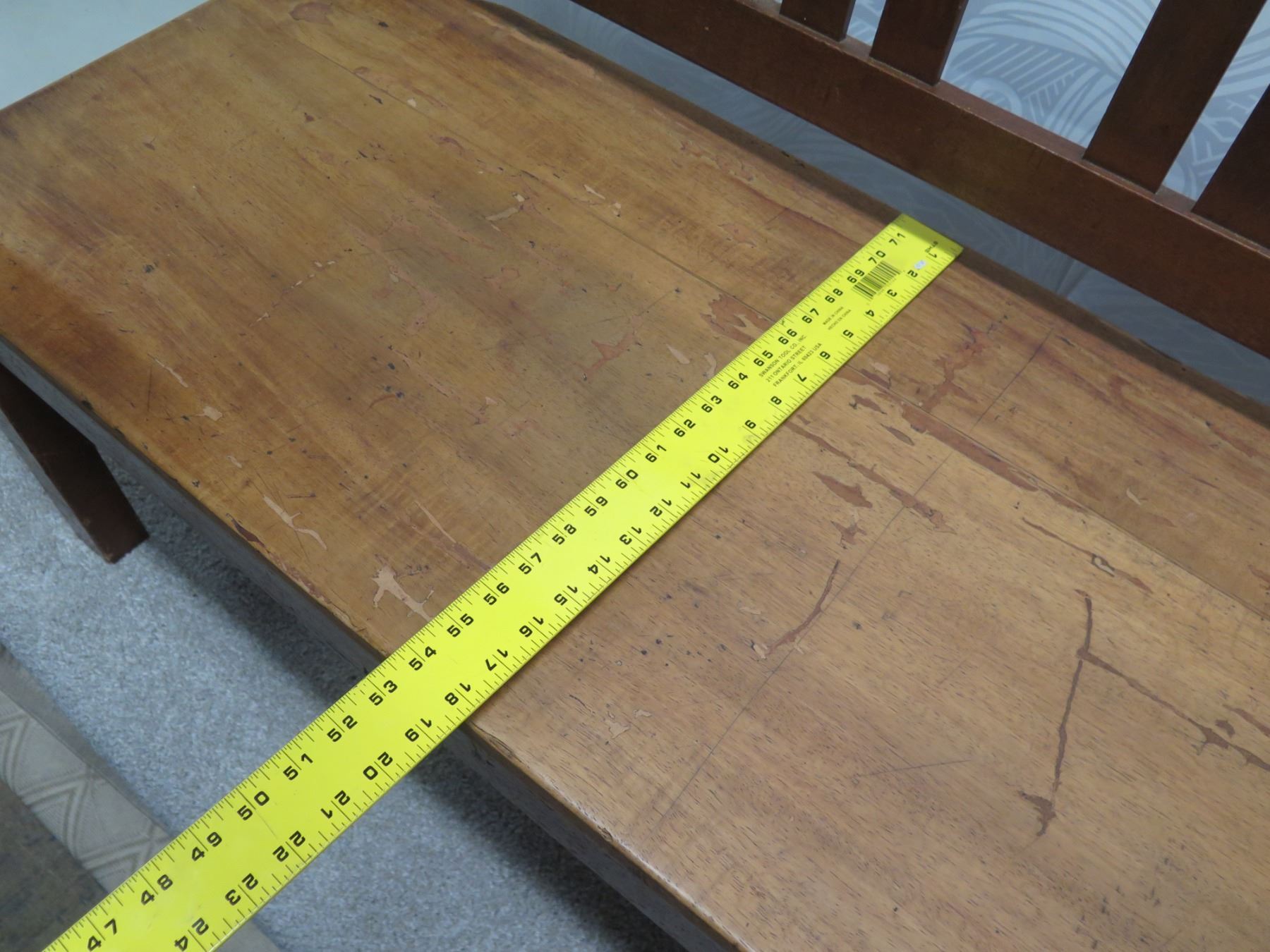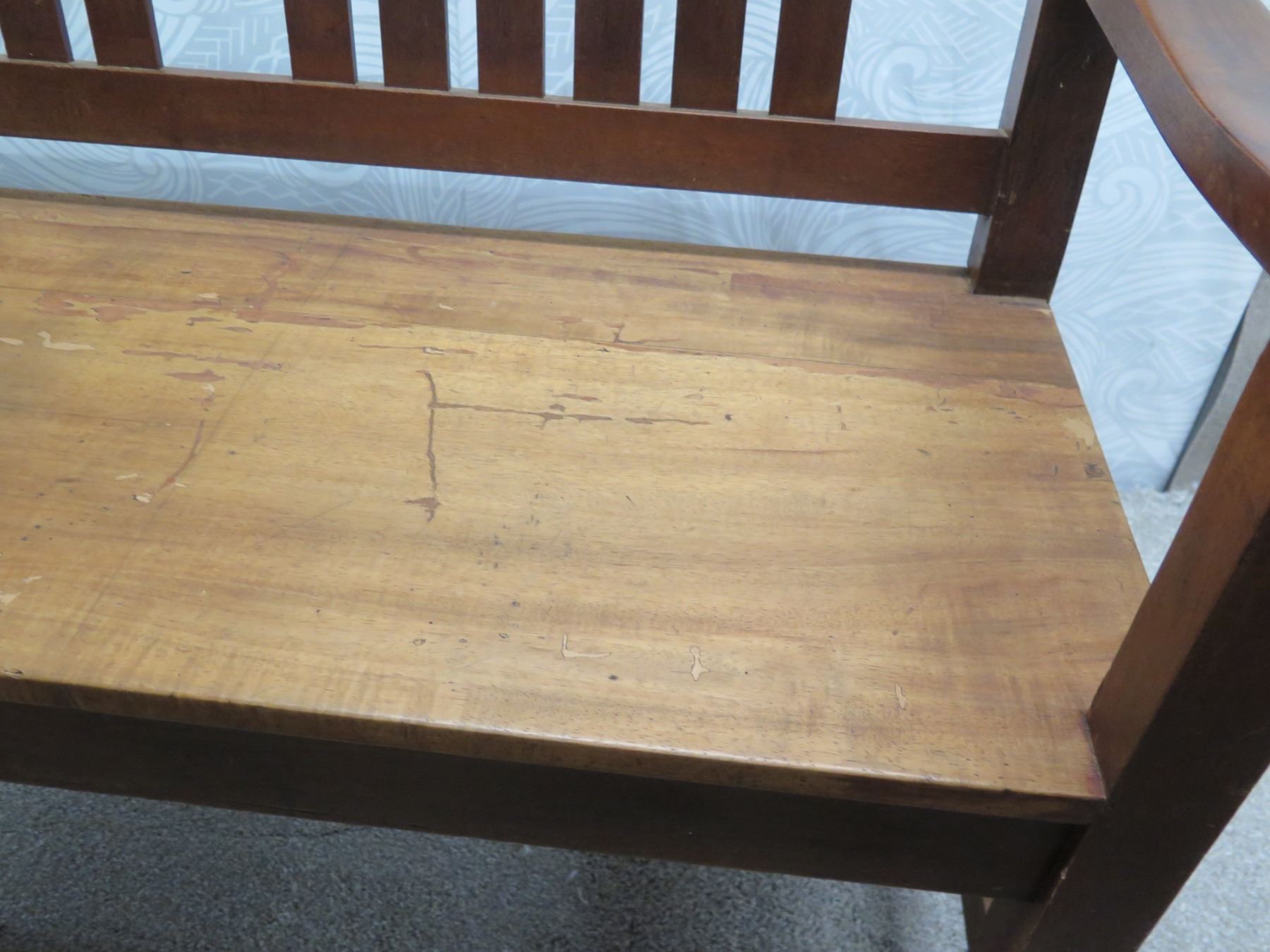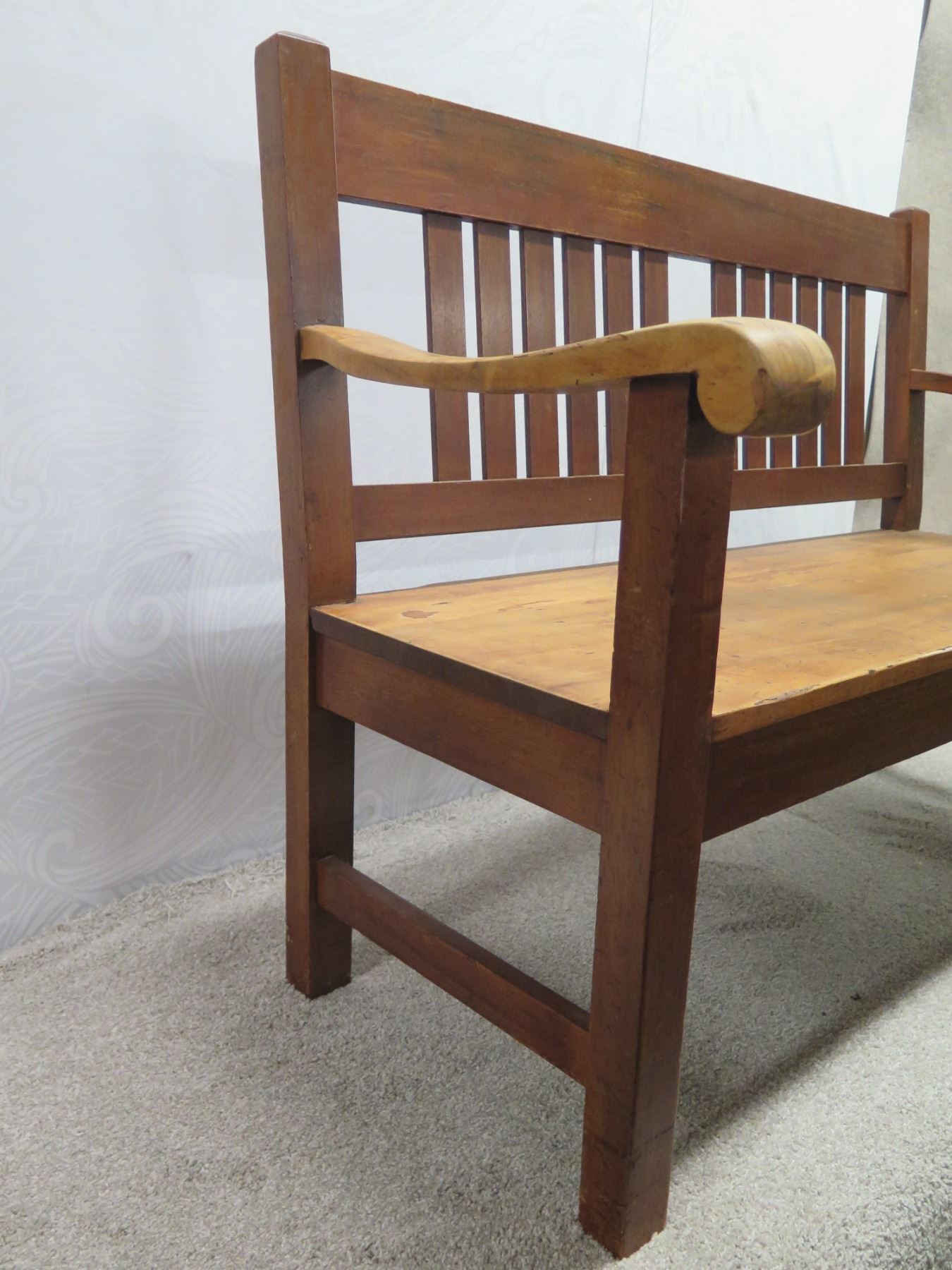 Koa Wood Bench w/ Arms & Slatted Back 48"x18"x36"H (needs repair & refinishing)