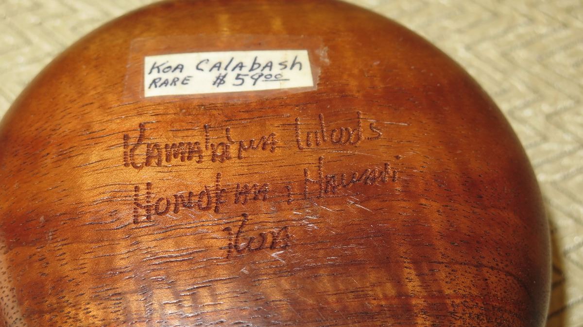 Koa Wood Calabash Bowl w/Inscription - Approx. 5" dia