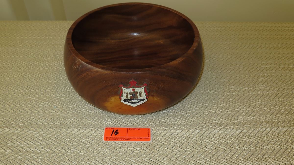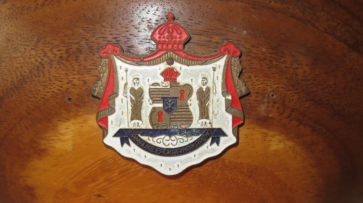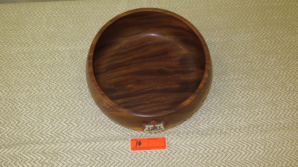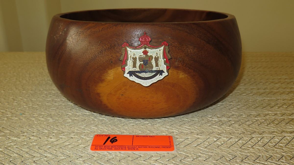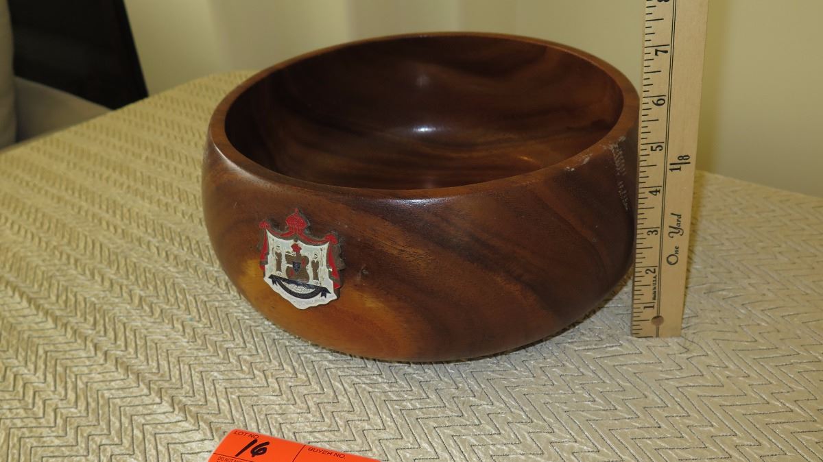 Koa Wood Calabash Bowl w/State of Hawaii Brass Crest