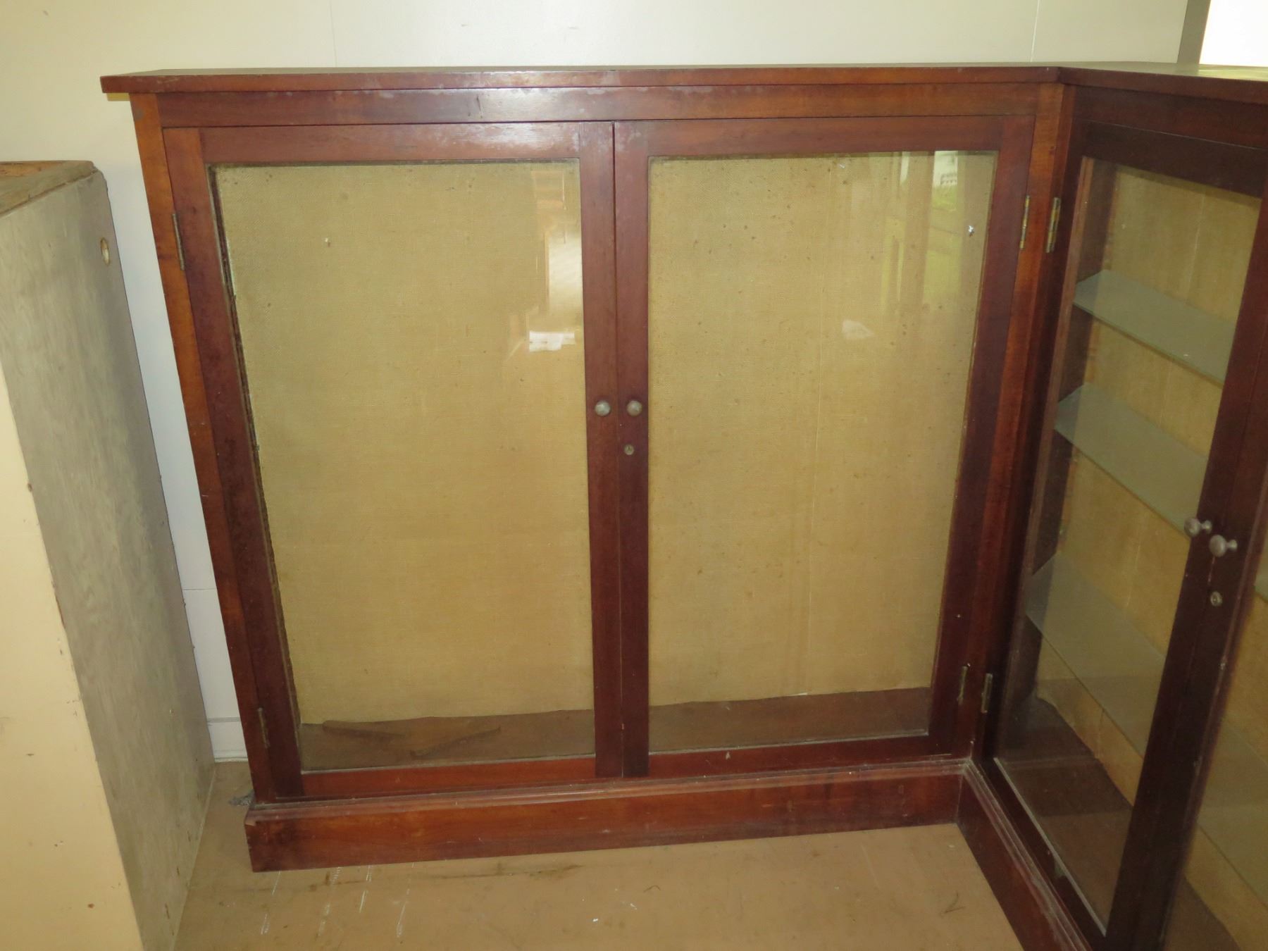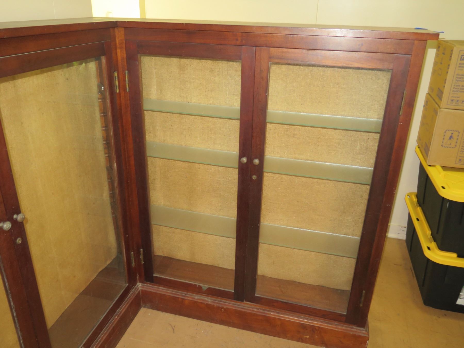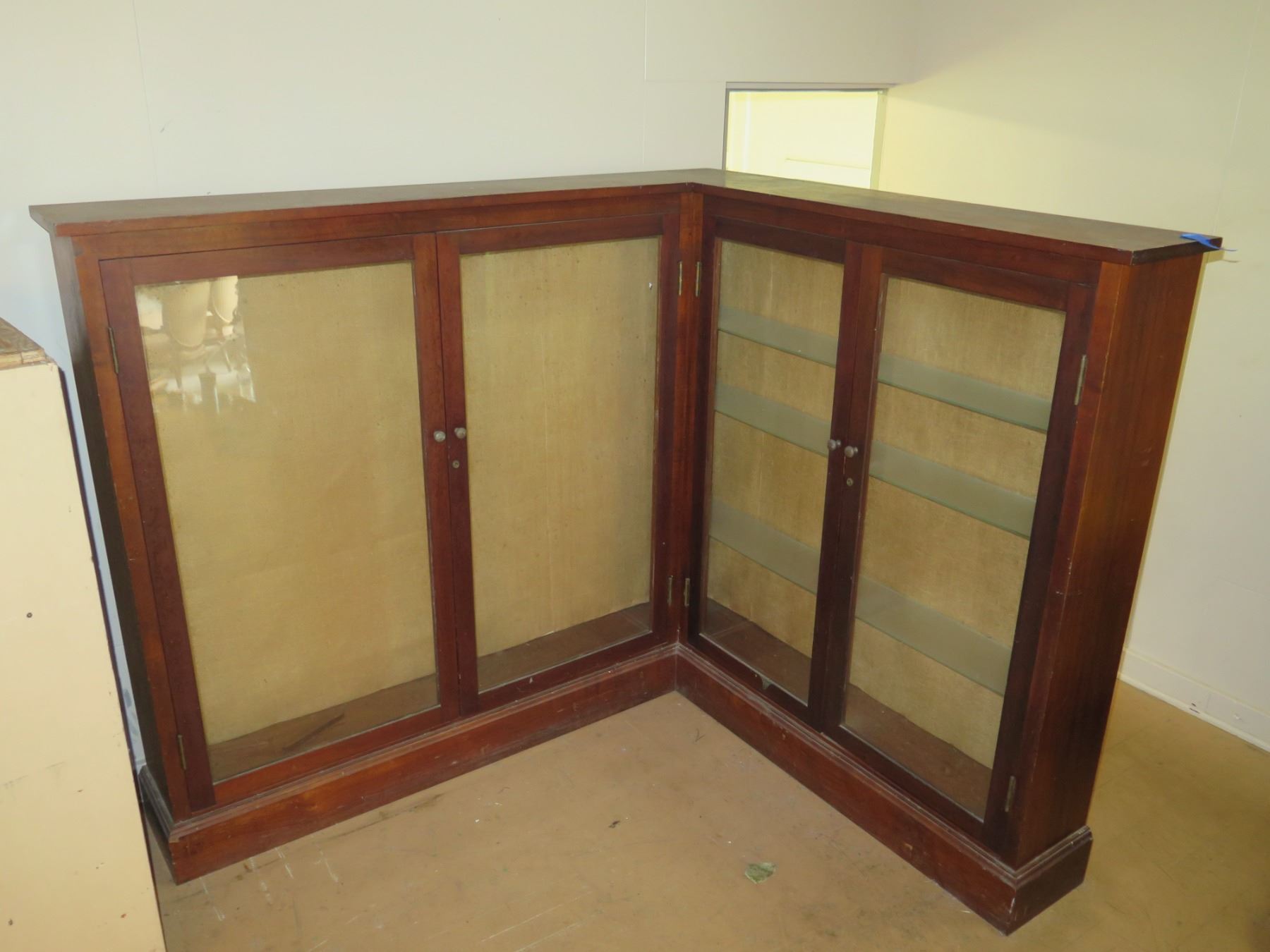 Koa Wood "L" Shaped Display Cases w/ 3 Shelves & Glass Doors 64"x55"L x11"x55"H