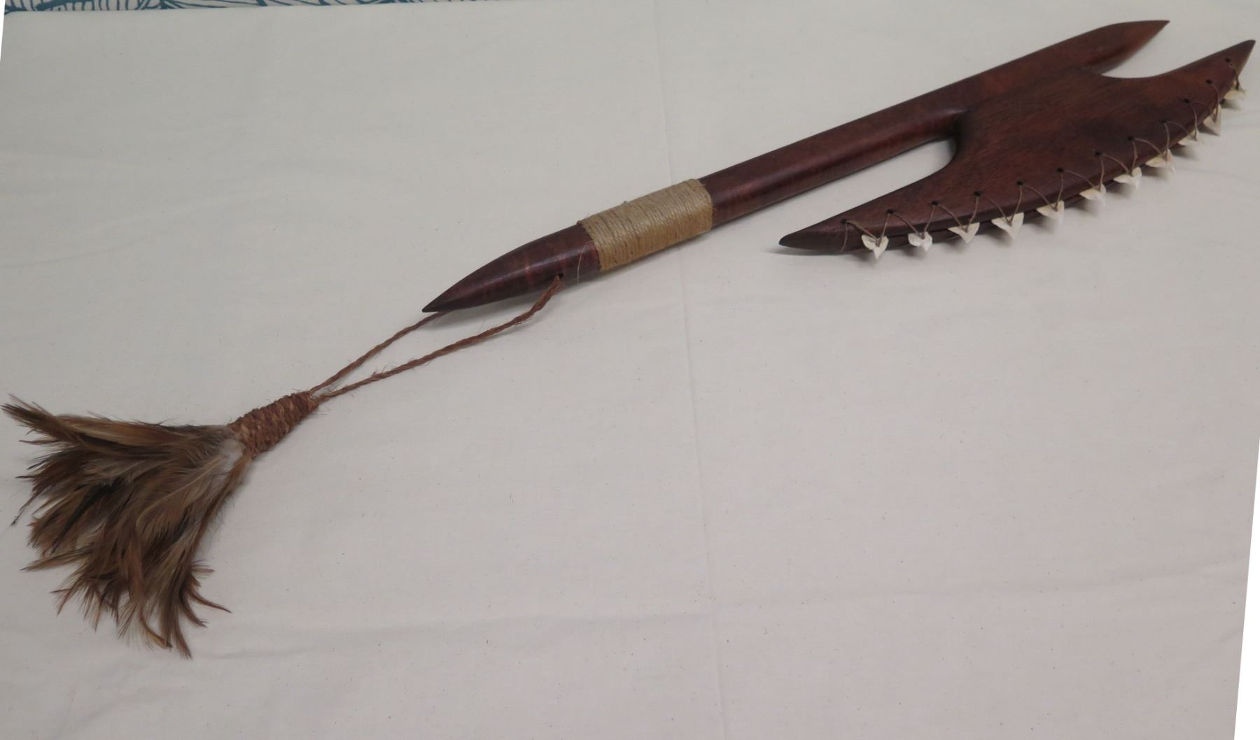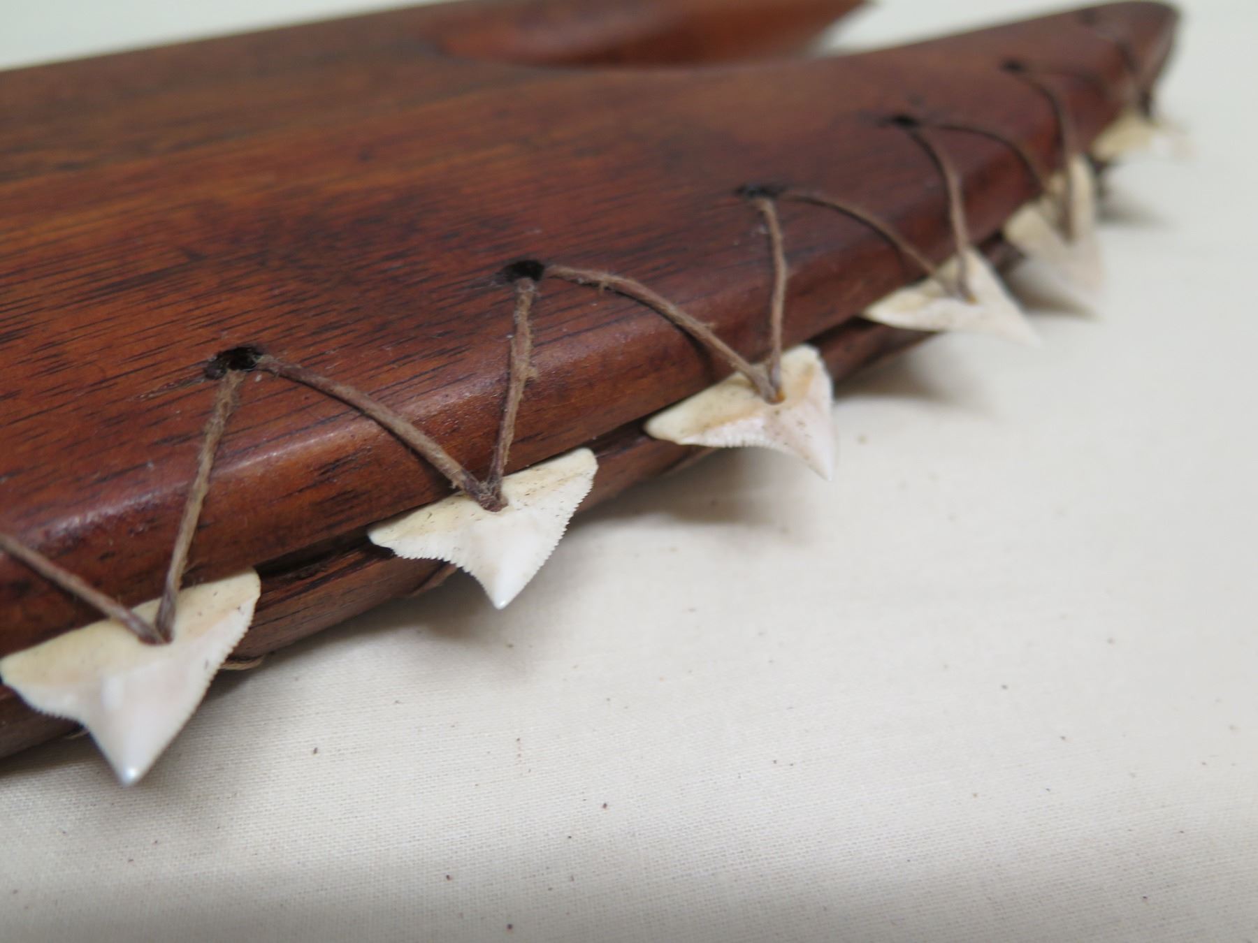 Koa Wood Replica of Historic Weapon w/ Shark Teeth Tied into Edges 33"L