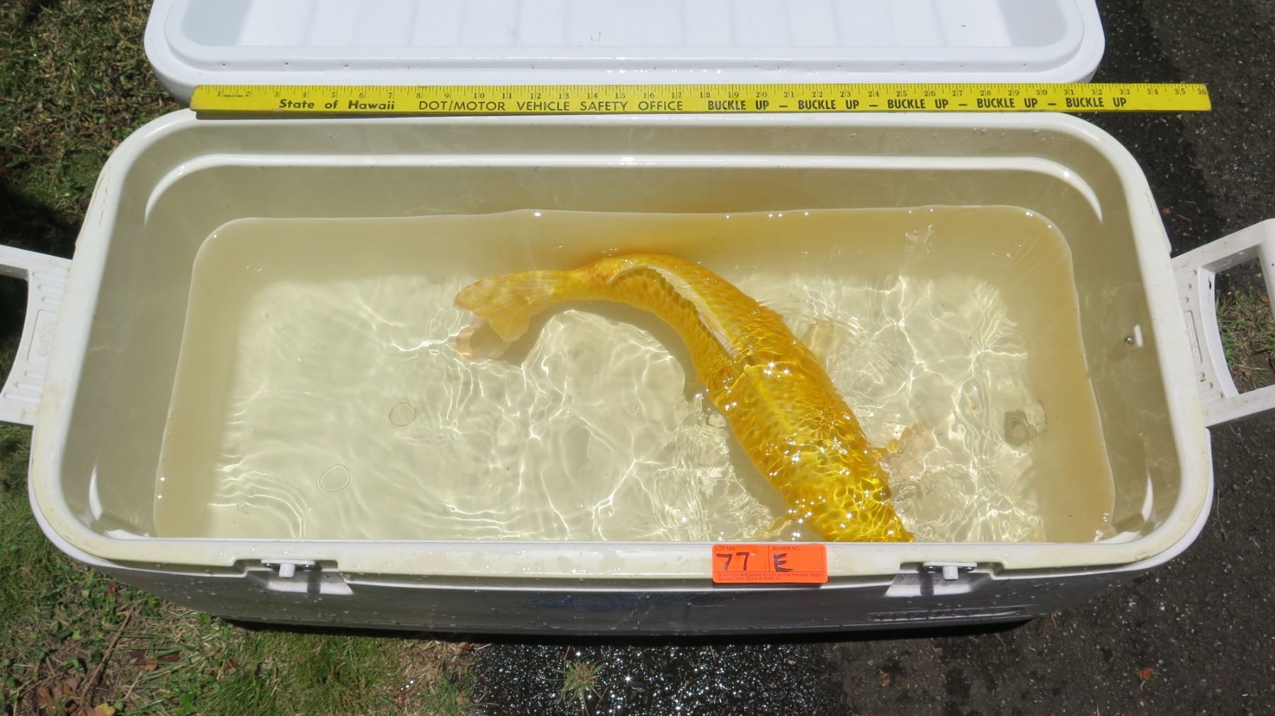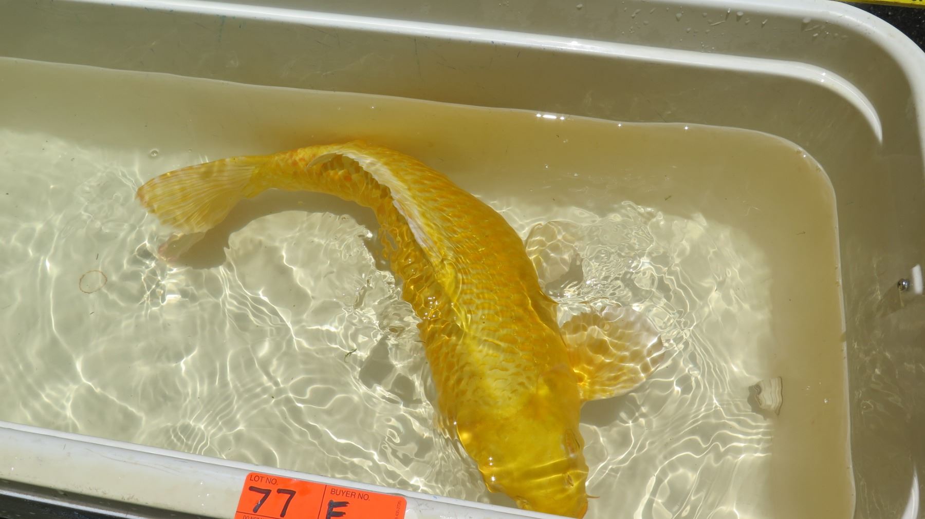 Koi Fish (Yellow). Buyer must bring own transport container and should have a viable plan for transport with the least possible impact on the koi.