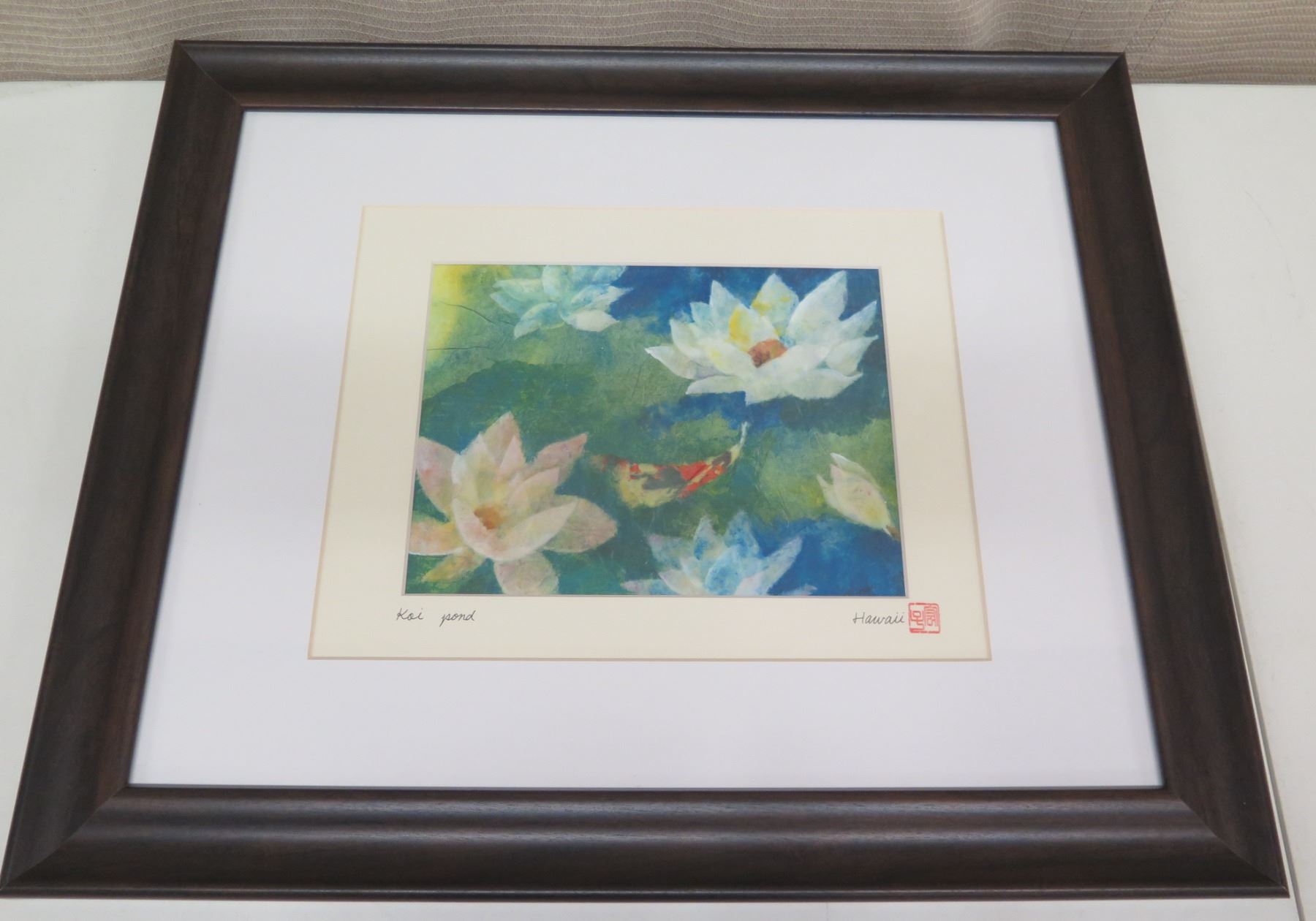 Koi Pond Hawaii Artwork w/ Maker's Mark Wood Framed & Matted 23"x19"