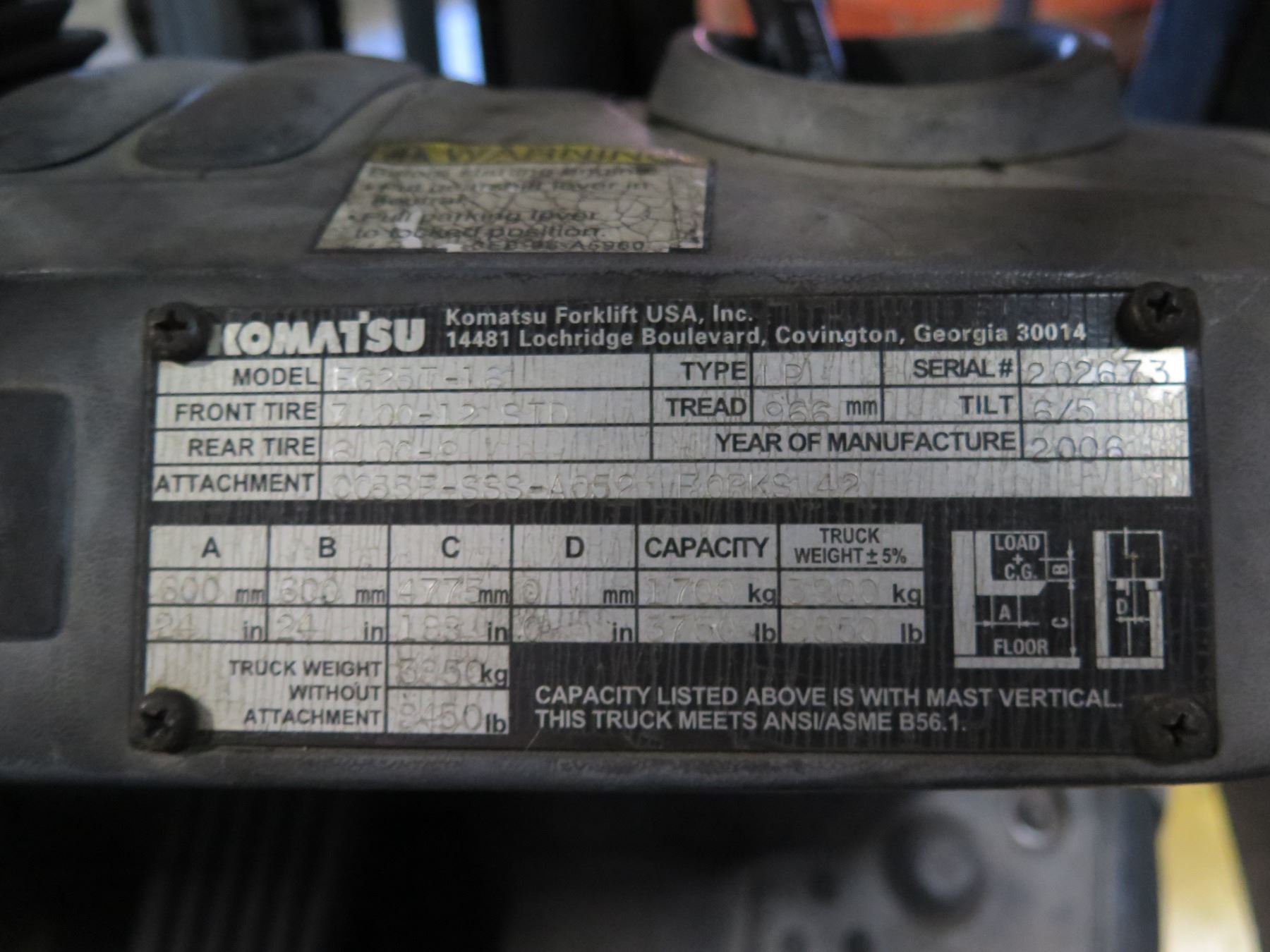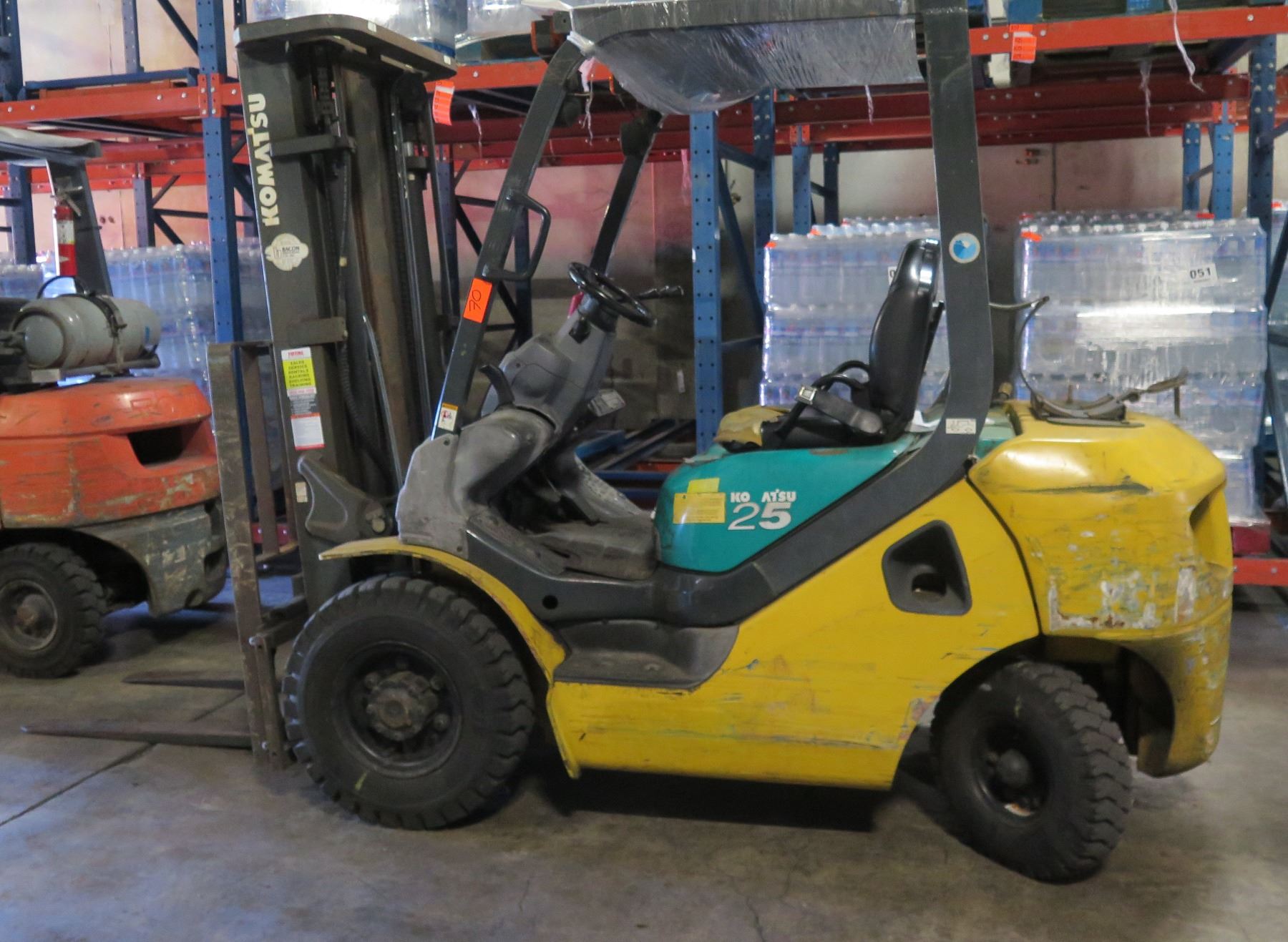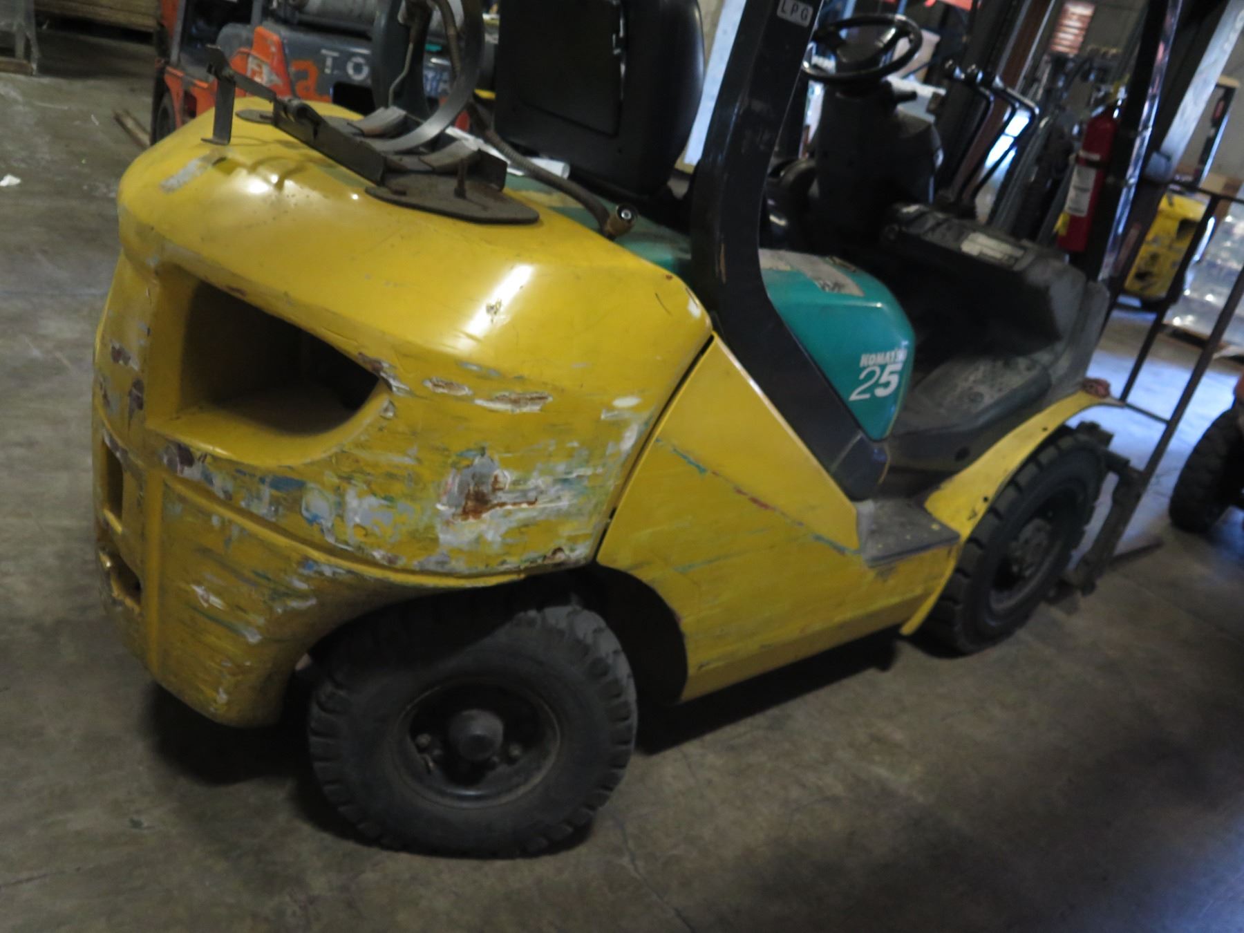 Komatsu FG25T Propane Forklift, 3669 Hours, Starts & Runs. Seat sensor is disconnected and does not move.