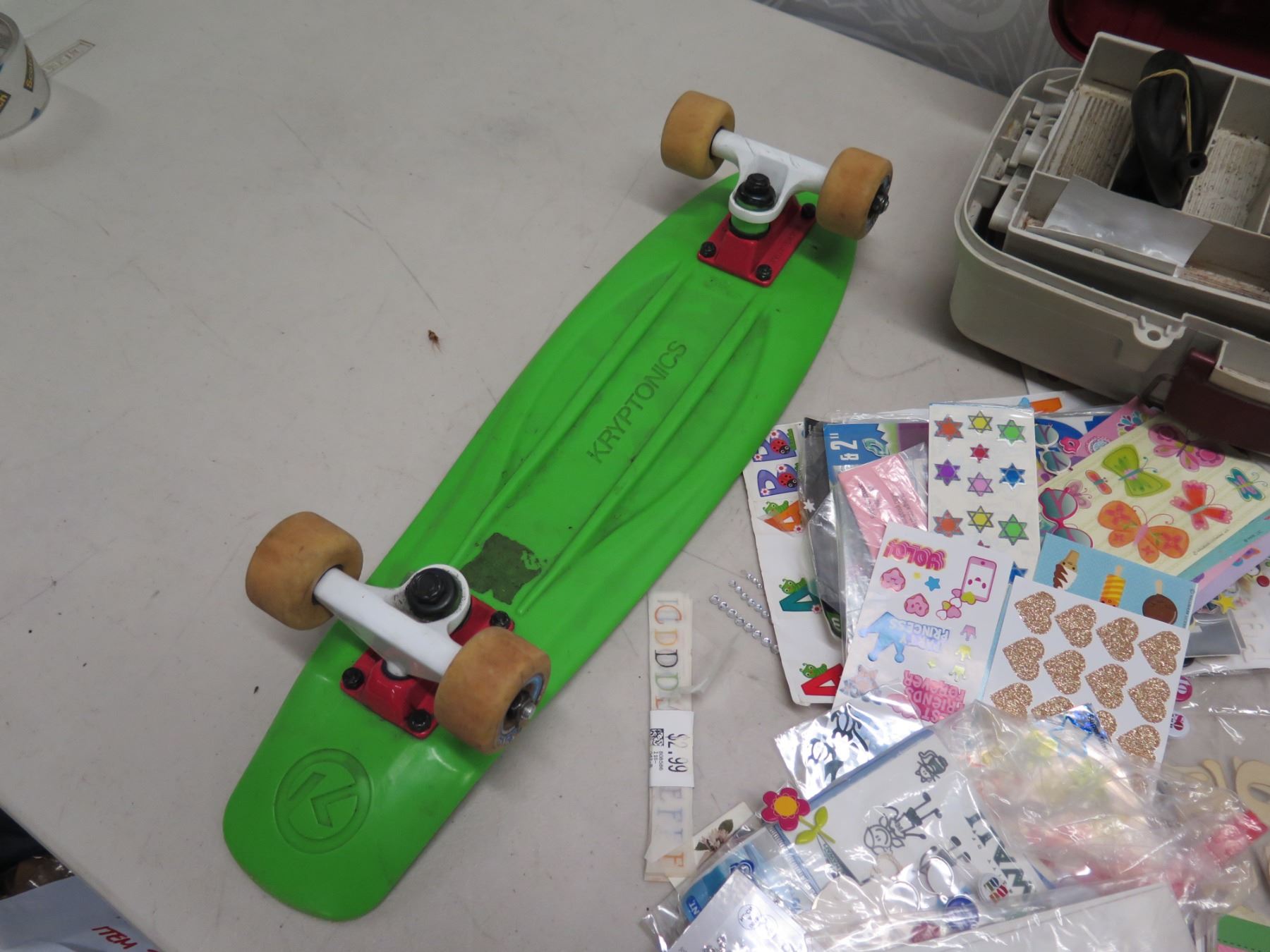 Kryptonics Skateboard & Multiple Stickers, Fishing String, etc in Hard Case