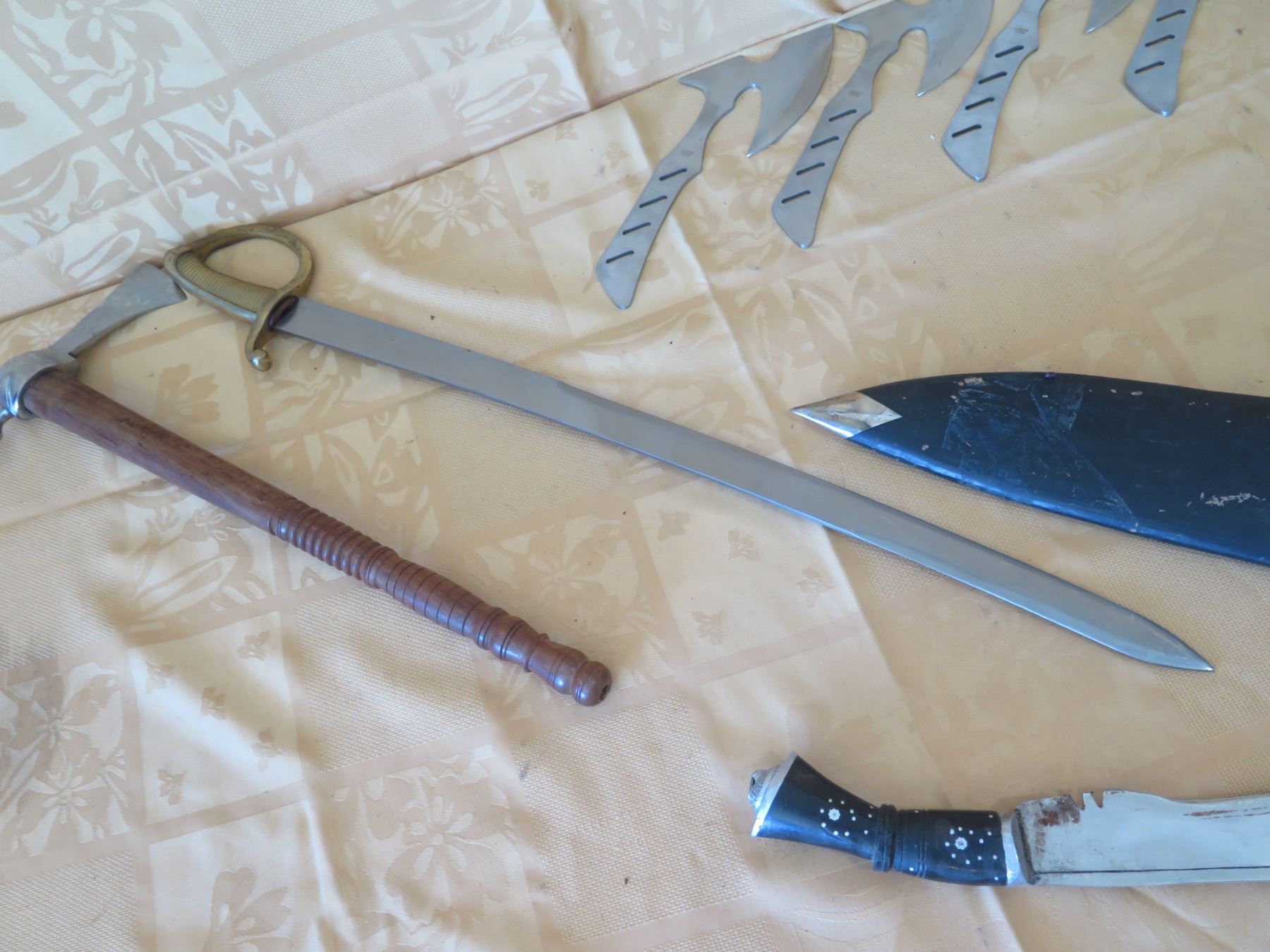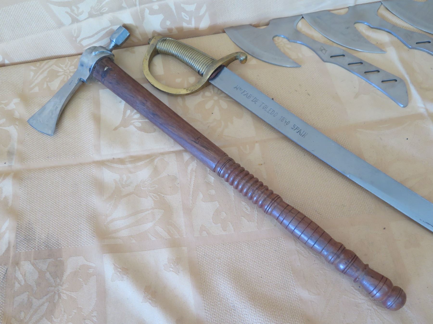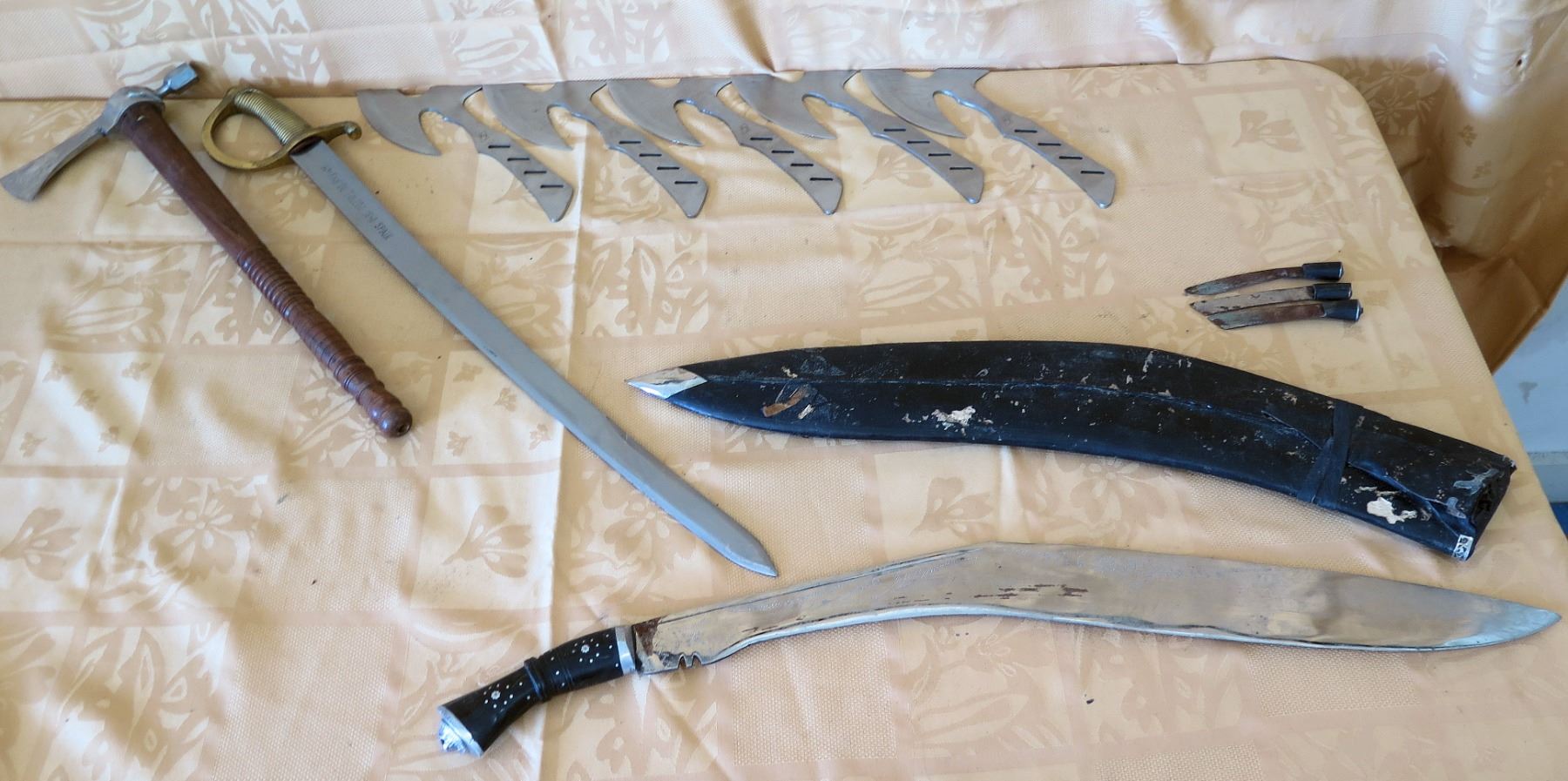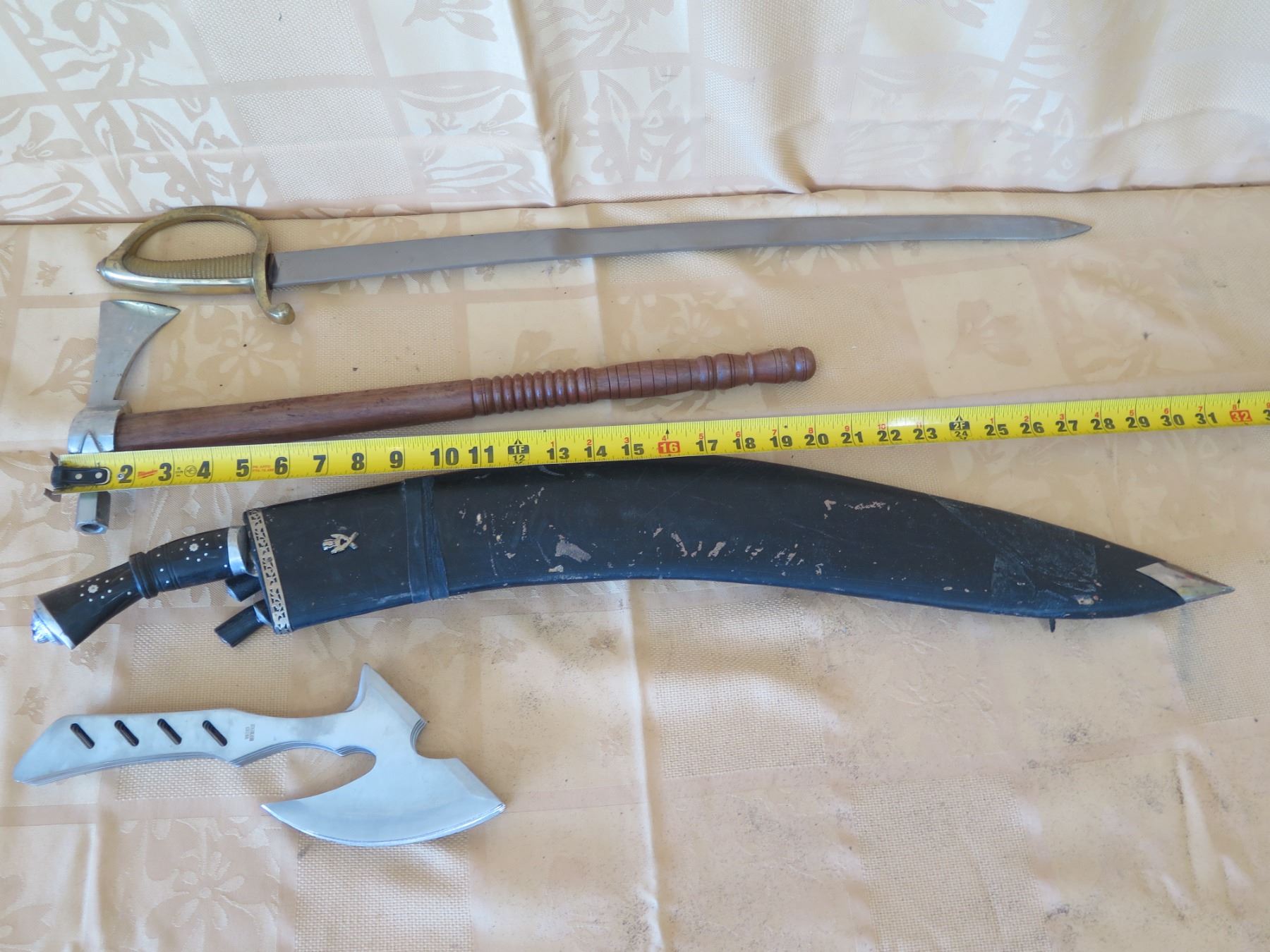 Kukri Machete w/ Curved Blades & Sheath, Sword Marked 1840 Spain, Tomahawks, etc