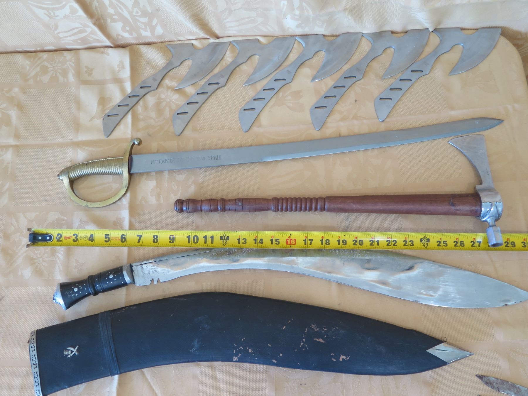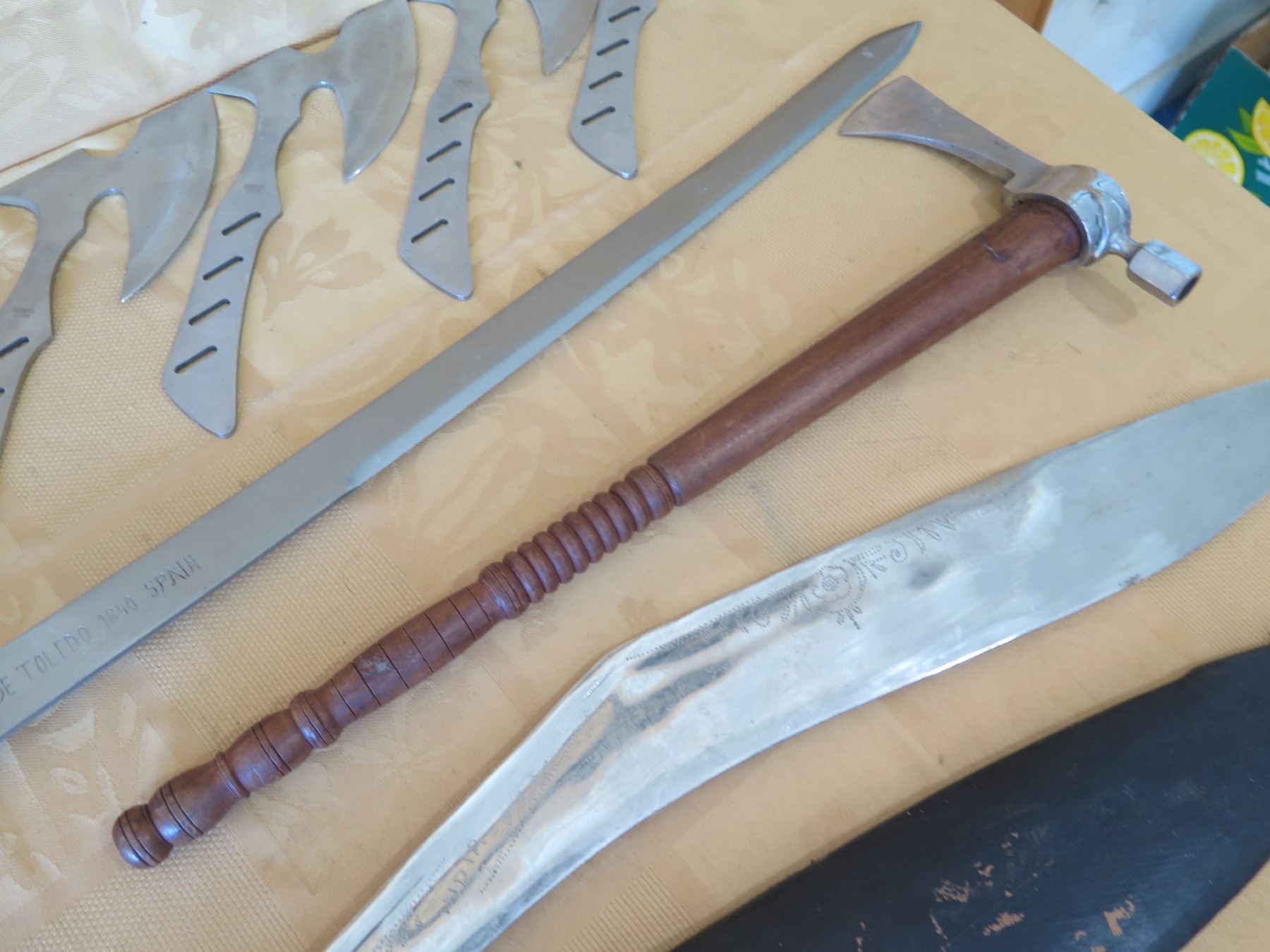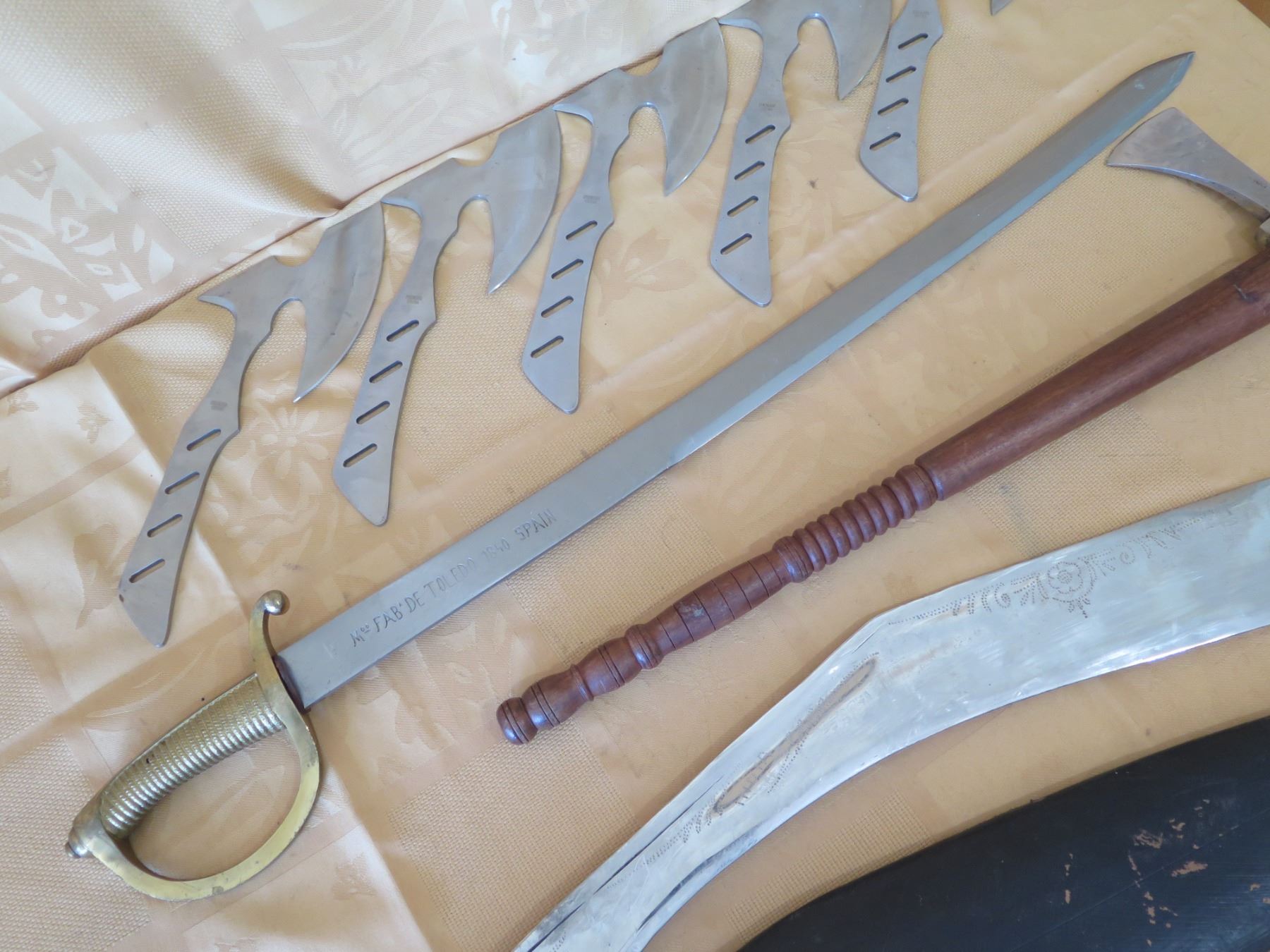 Kukri Machete w/ Curved Blades & Sheath, Sword Marked 1840 Spain, Tomahawks, etc