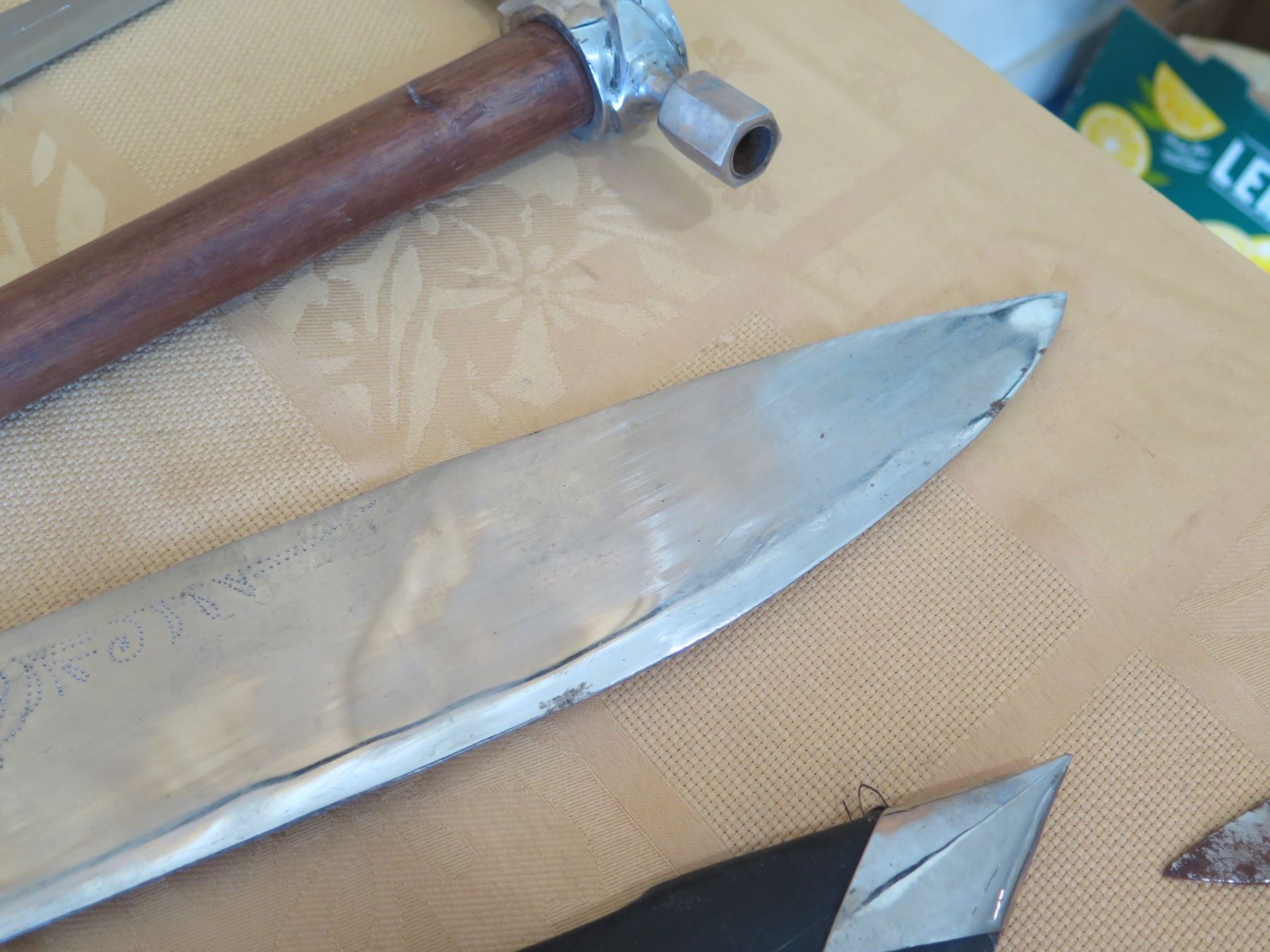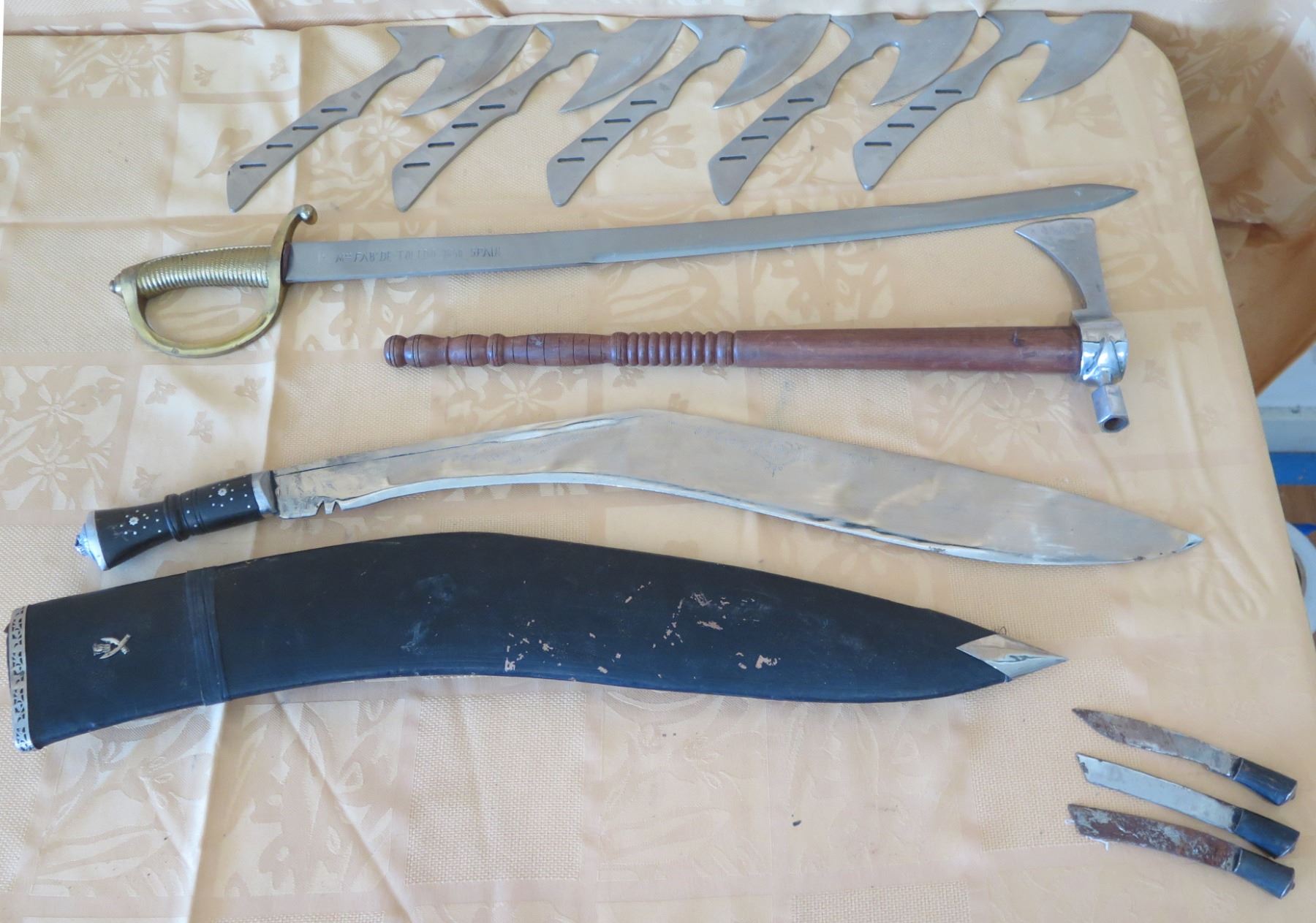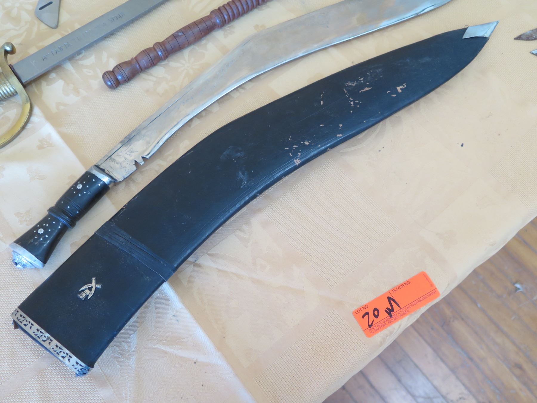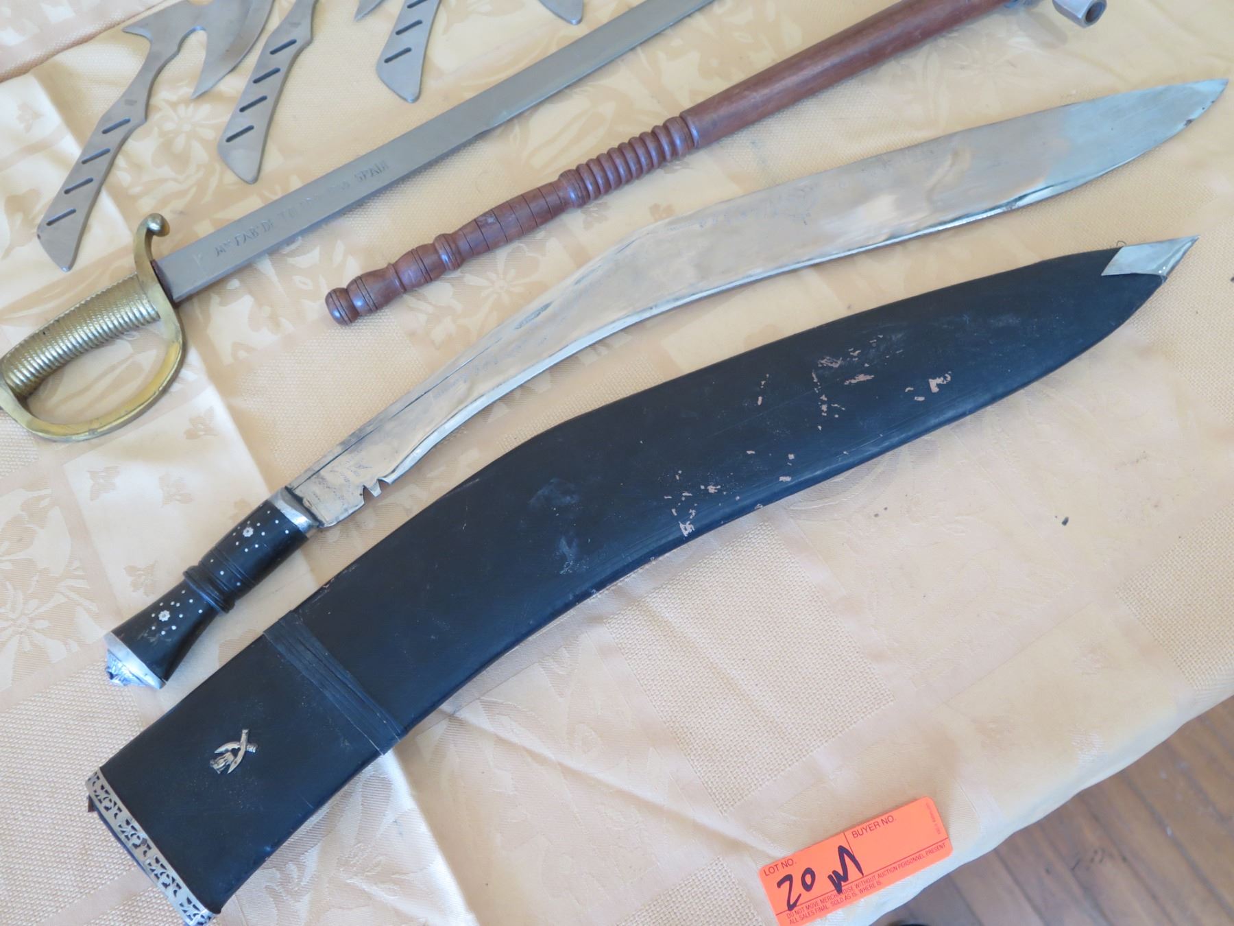 Kukri Machete w/ Curved Blades & Sheath, Sword Marked 1840 Spain, Tomahawks, etc