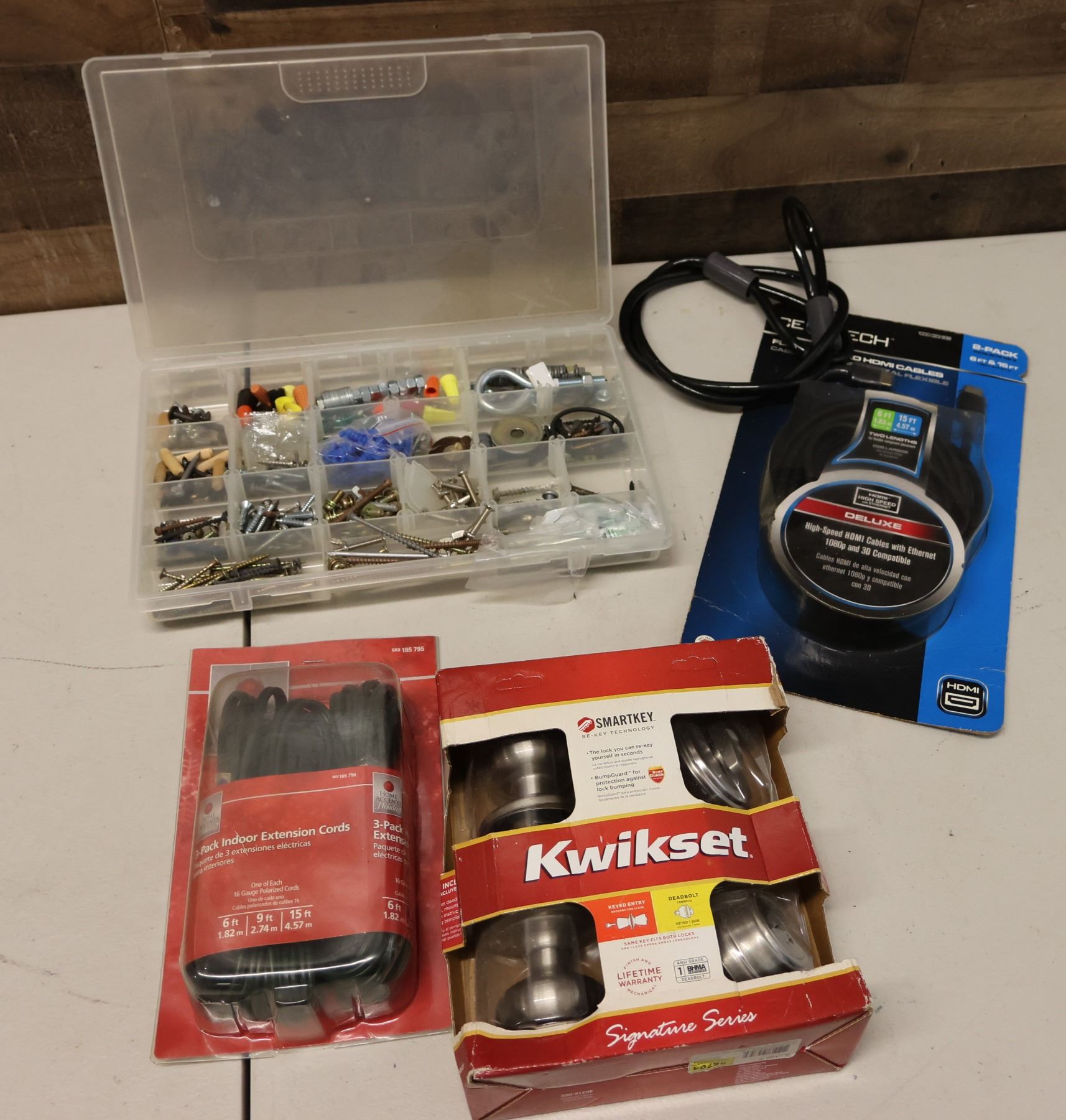 Kwikset Smart Key Lock System, Extension Cords, Hardware in Organizer, etc