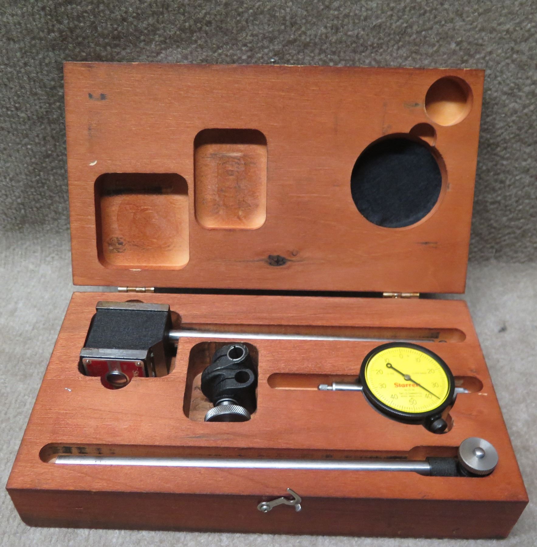 L.S. Starrett Co. 25-181 Dial Indicator Calibrated w/ 657 Indicator Holder in Case
