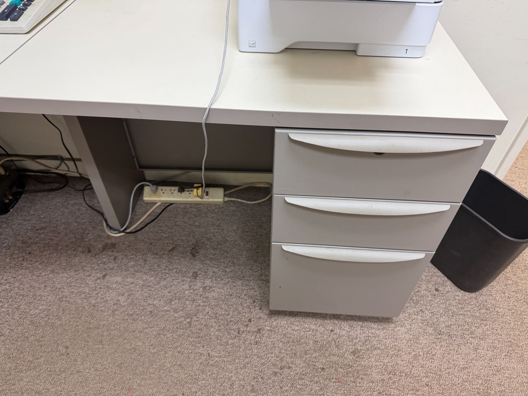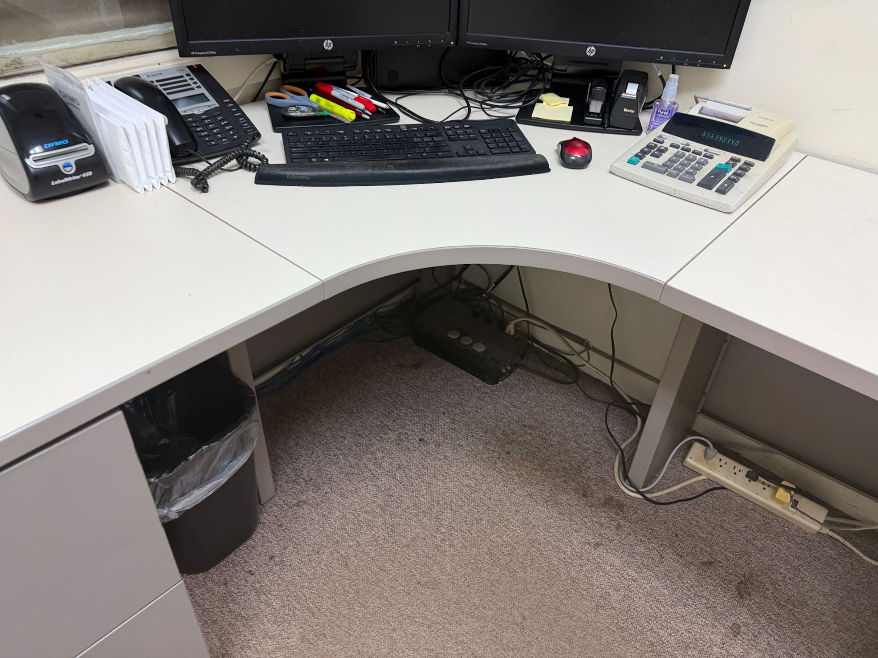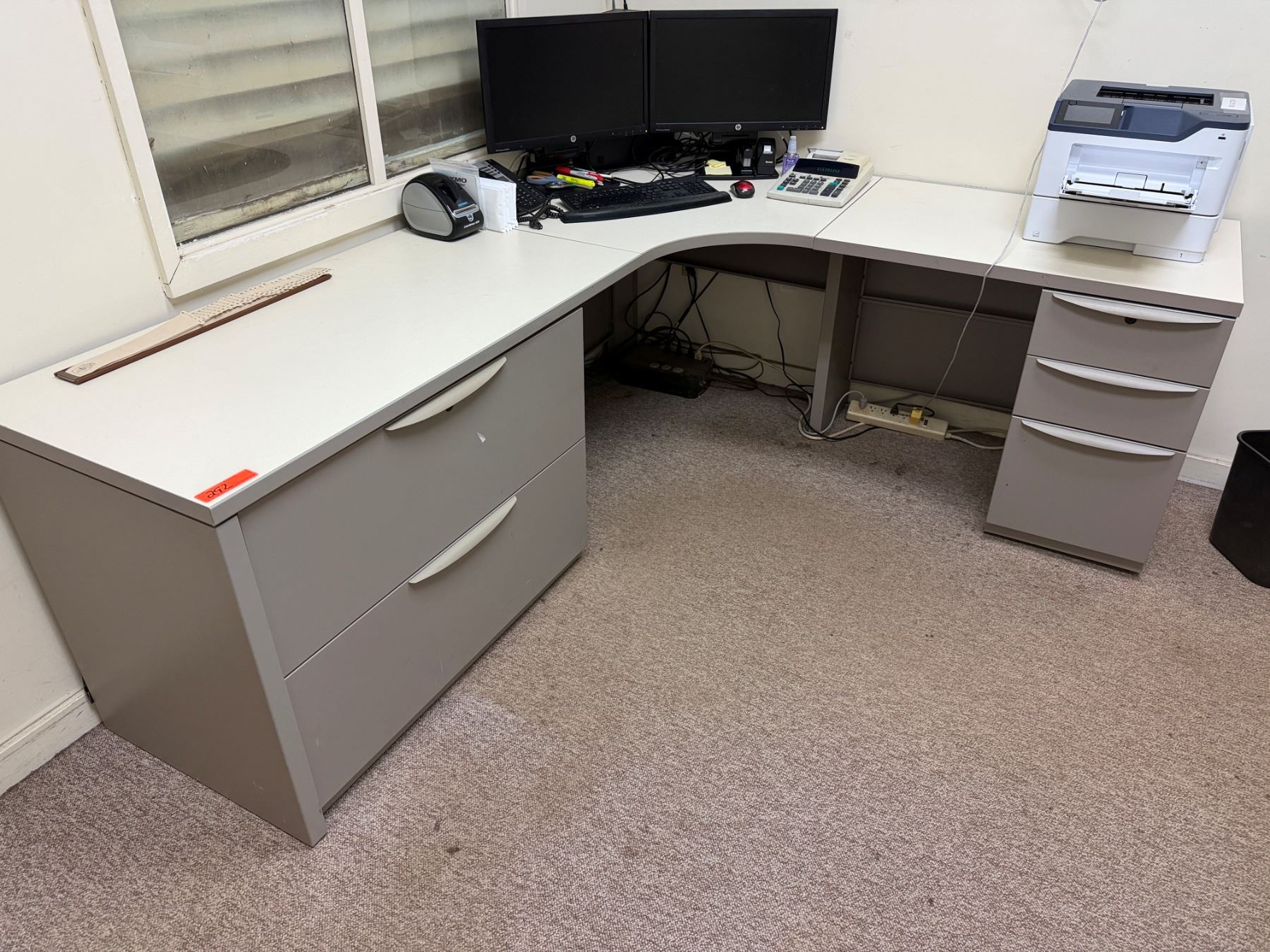 L-Shaped Desk w/ 5 Drawers 84" x 71" (contents not included)