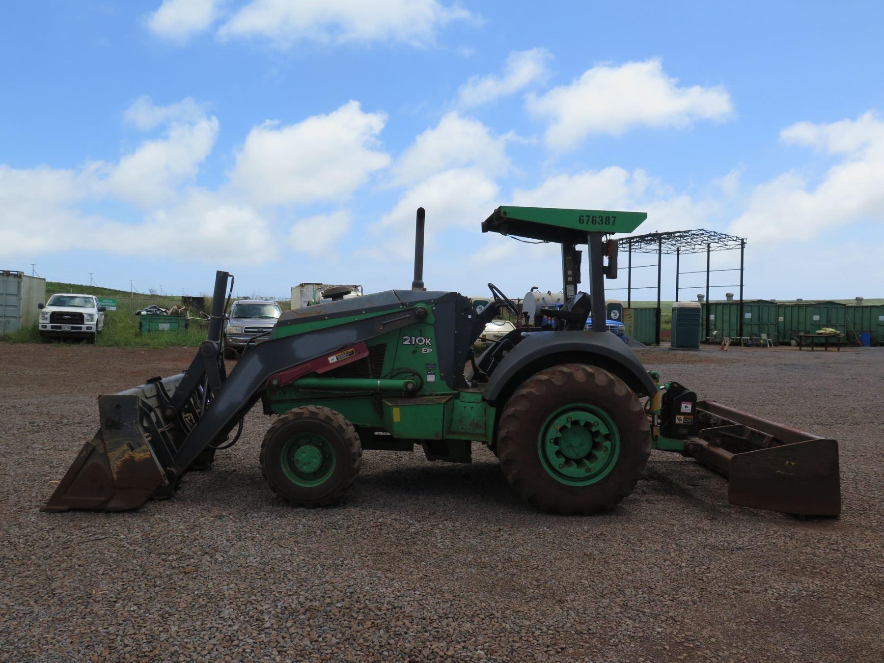 LANAI: 2014 John Deere 210KEP Landscaper Tractor Loader Starts & Runs (See Video). Approx. 2600 Hrs. With Clamshell-Type Loader Bucket, Landscape Blade w/ Scarifyer.