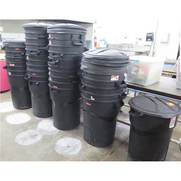 Multiple Rubbermaid & Other Black Plastic Waste Receptables w/ Some Lids