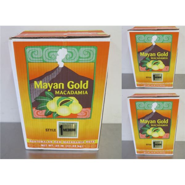 Qty 3 Boxes Mayan Gold Guatemalan Raw Macadamia Nuts Style 1 Medium 25 lbs (expired 5/20)