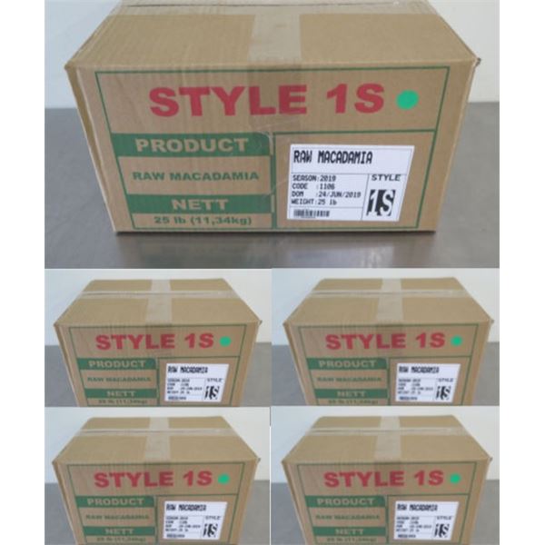 Qty 5 Boxes Queen Nut Raw Macadamia Style 1S 25lbs