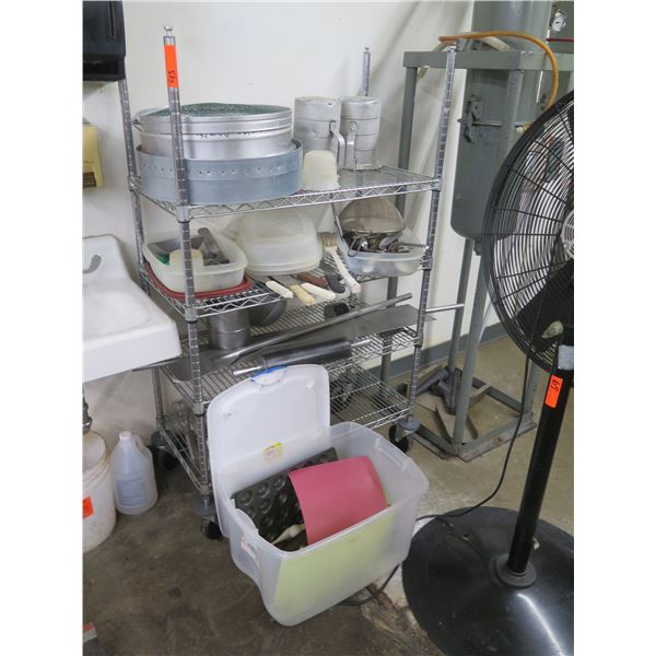 Rolling Metal Mesh 4-Tier Adjustable Shelf & Contents: Sifters, Utensils, etc