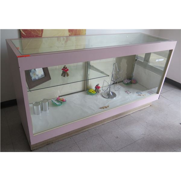 Pink Display Cabinet w/ Glass Shelves, Top & Front, Sliding Back Doors 72"x16"x48"H