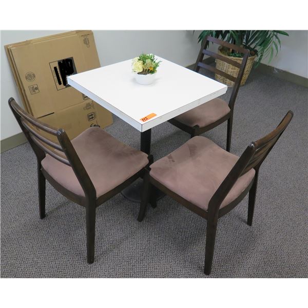 Square Table on Pedestal Base 24"x24"x31" & 3 Wooden Chairs w/ Upholstered Seats
