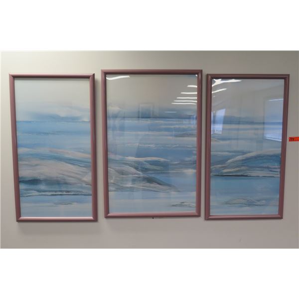 Qty 3 Framed Whale Artwork 66"L (total) x 34"H