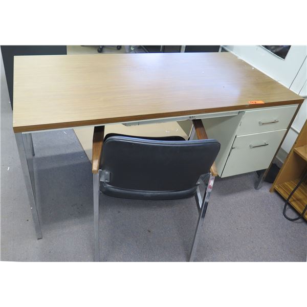 Metal Desk w/ Laminate Top, 2 Drawers & Stationary Armchair 60"x30"x30"