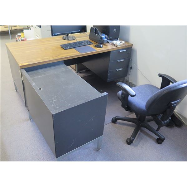 Metal Desk w/ Laminate Top, 5 Drawers & Rolling Armchair 72"x36"