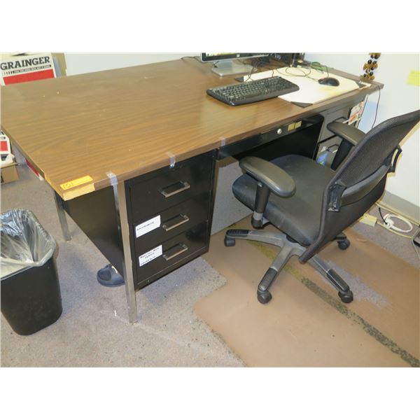 Metal Desk w/ Laminate Top, 5 Drawers & Rolling Armchair 72"x36"151 - Metal Desk w/ Laminate Top, 5 Drawers & Rolling Armchair 72"x36"