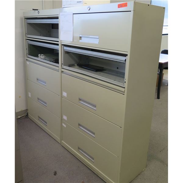 Qty 2 Supreme Systems Metal 5-Drawer Lateral Filing Cabinets 36"x18"x64"H (each)