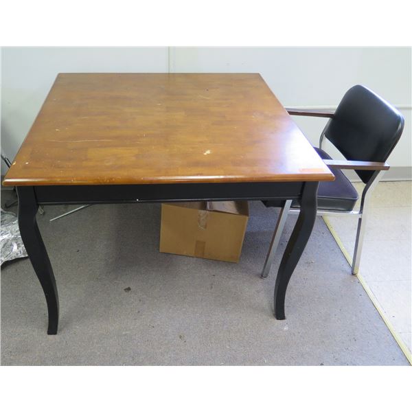 Wooden Table w/ Cabriolet Legs & Stationary Armchair 41"x41"x30"H