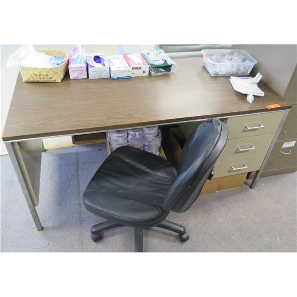 Qty 2 Metal Desks w/ Laminate Tops & Drawers w/ 1 Rolling Chair  (contents not included)161 - Qty 2 Metal Desks w/ Laminate Tops & Drawers w/ 1 Rolling Chair (contents not included)