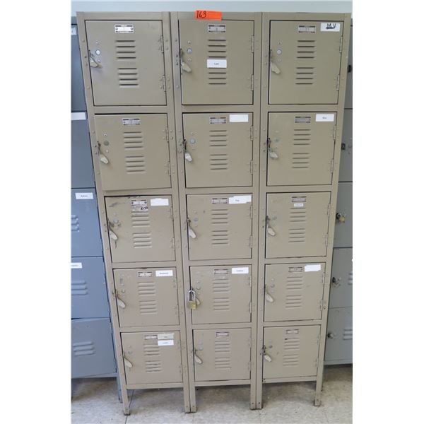 Worley Metal 15-Section Locker Unit 36"x12"x66"H163 - Worley Metal 15-Section Locker Unit 36"x12"x66"H