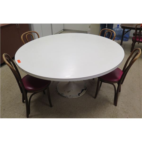 Round Table on Pedestal Base 60"dia, 29"H w/ 4 Wooden Chairs