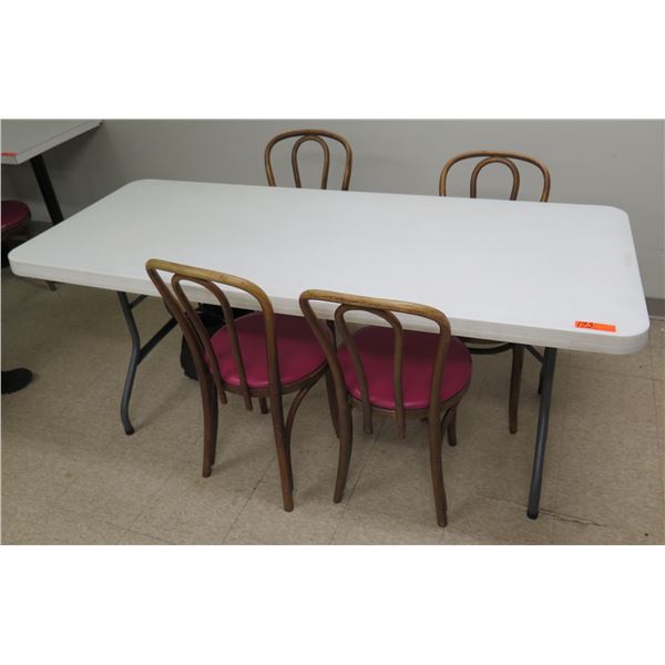 Folding Table 72"x30"x29"H w/ 4 Wooden Chairs