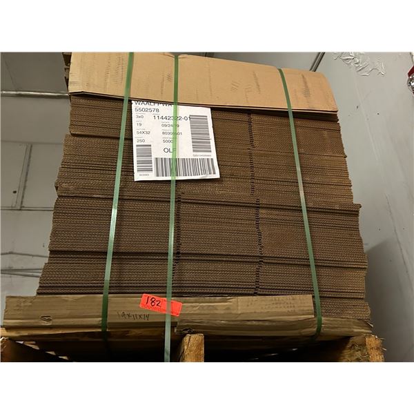 Qty 250 Unused Cardboard Boxes w/ Ed & Don's Logo 19"x11"14"H (all strapped onto 1 pallet)182 - Qty 250 Unused Cardboard Boxes w/ Ed & Don's Logo 19"x11"14"H (all strapped onto 1 pallet)