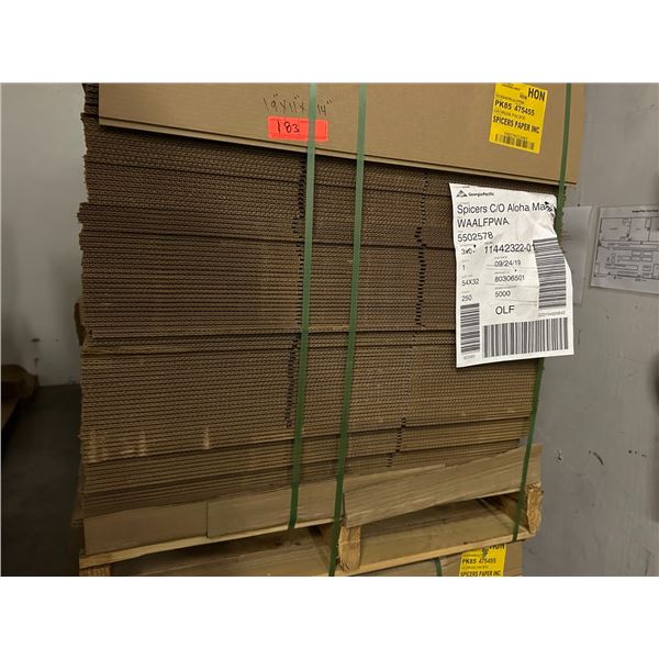 Qty 250 Unused Cardboard Boxes w/ Ed & Don's Logo 19"x11"14"H (all strapped onto 1 pallet)180 - Qty 250 Unused Cardboard Boxes w/ Ed & Don's Logo 19"x11"14"H (all strapped onto 1 pallet)