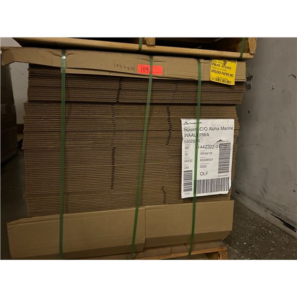 Qty 250 Unused Cardboard Boxes w/ Ed & Don's Logo 19"x11"14"H (all strapped onto 1 pallet)184 - Qty 250 Unused Cardboard Boxes w/ Ed & Don's Logo 19"x11"14"H (all strapped onto 1 pallet)