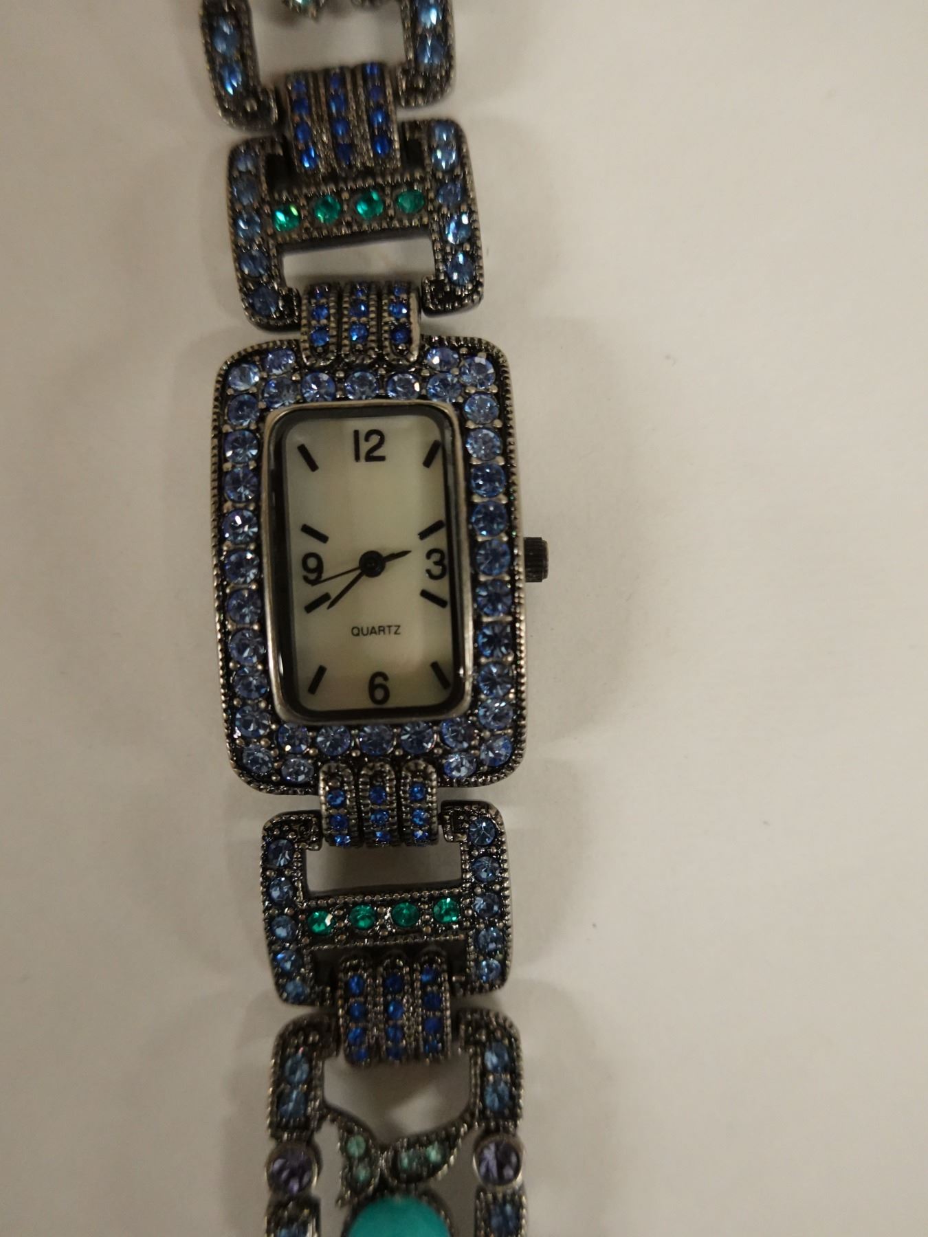 LaVintage Stainless Steel Watch w/ Stone Bead Accents 7.5" L