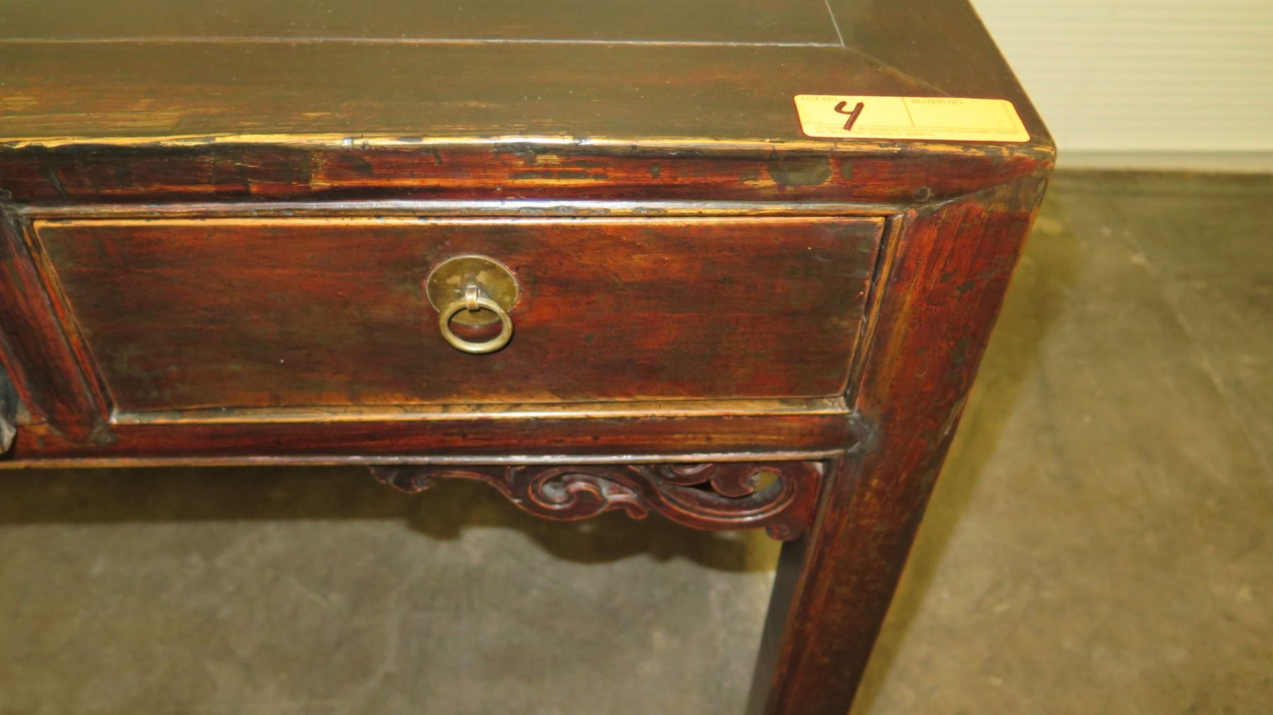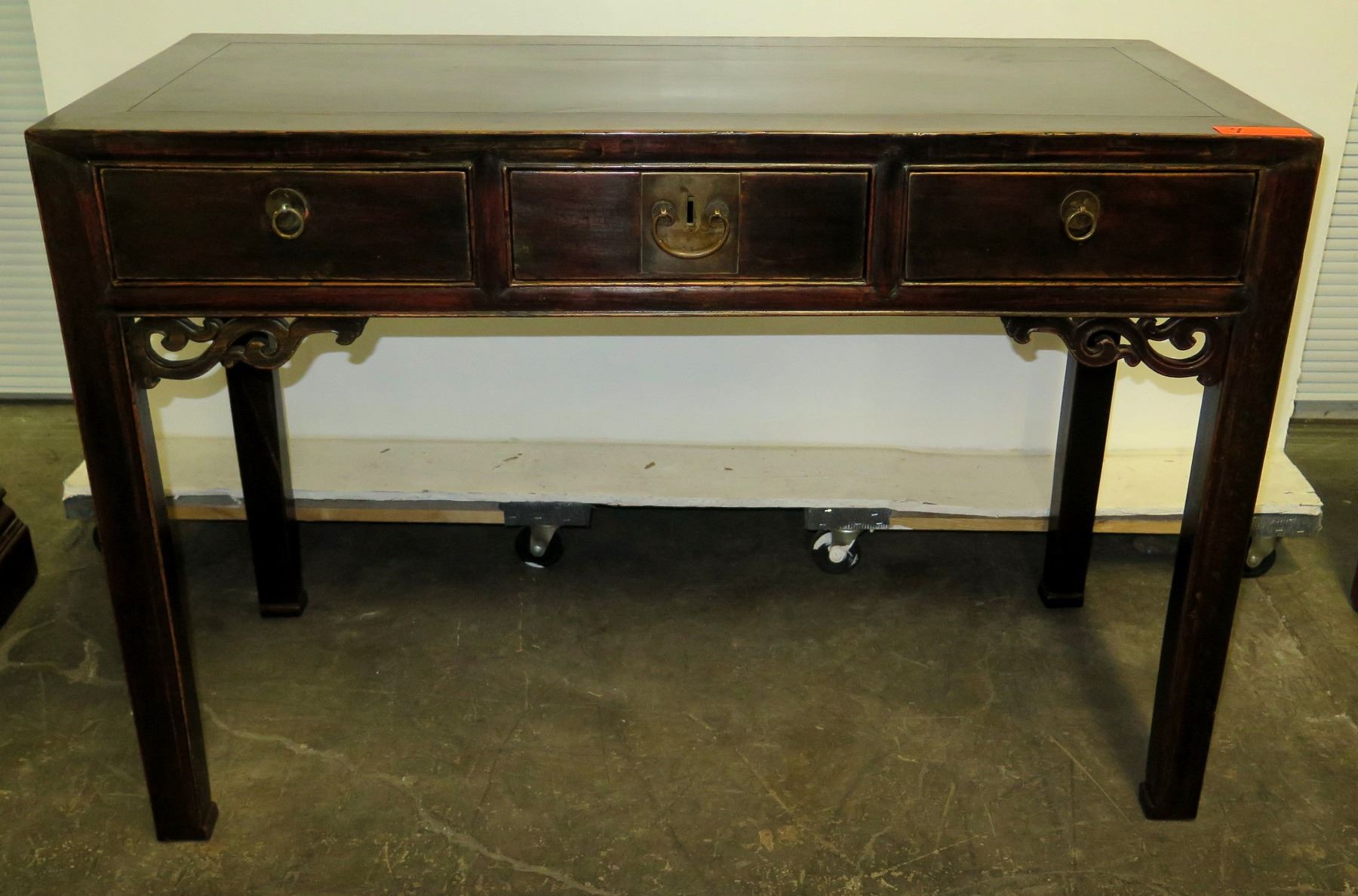 Lacquered Qing Dynasty 19th Century (Circa 1880) Juwood 3-Drawer Desk, 46" L x 20.5" x 31" H. Origin: Zhejiang, China. Includes Certificate of Antiquity