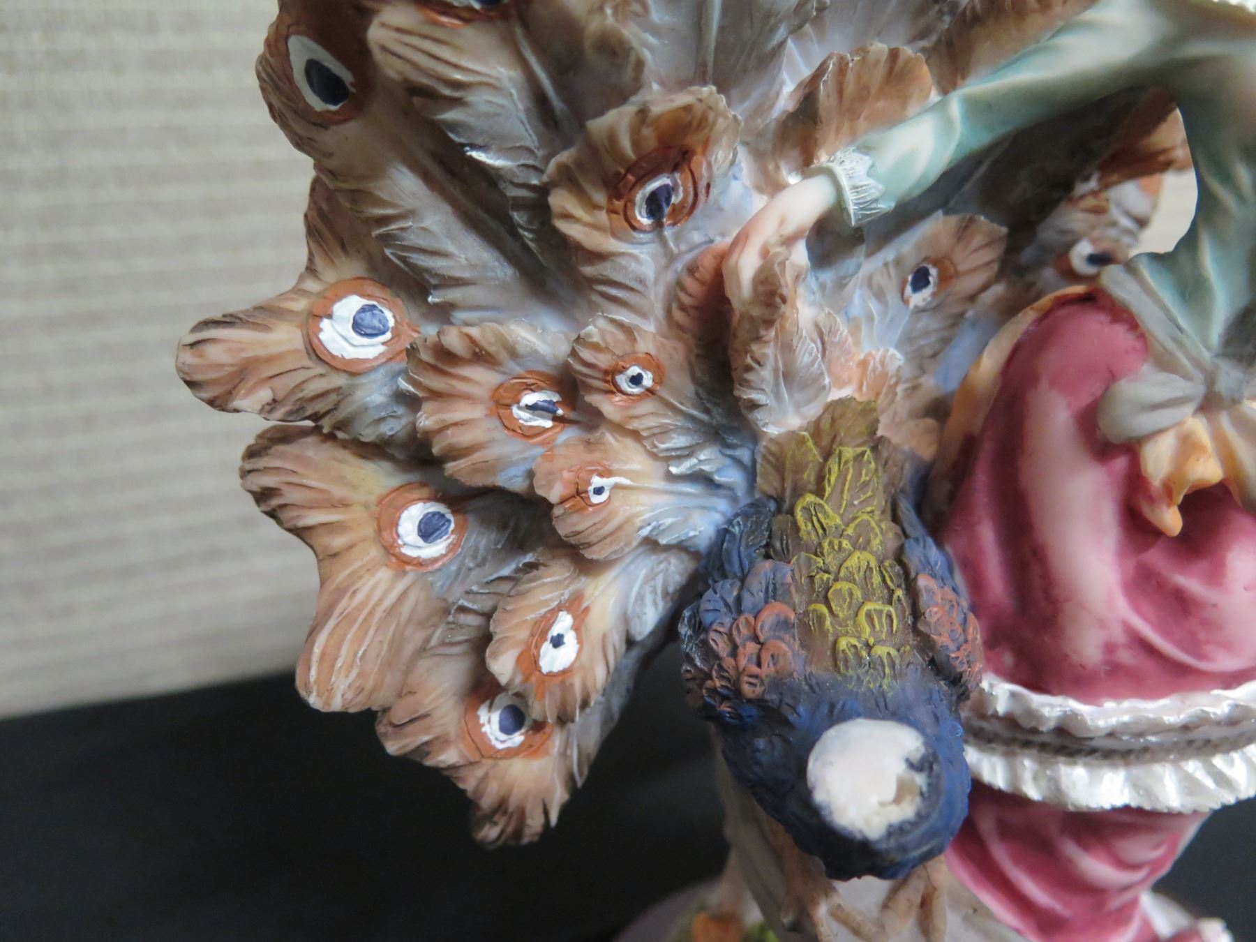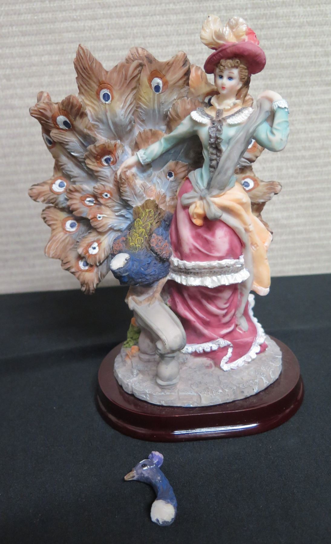 Lady w/ Peacock Figurine 9"H (Peacock head broken off)