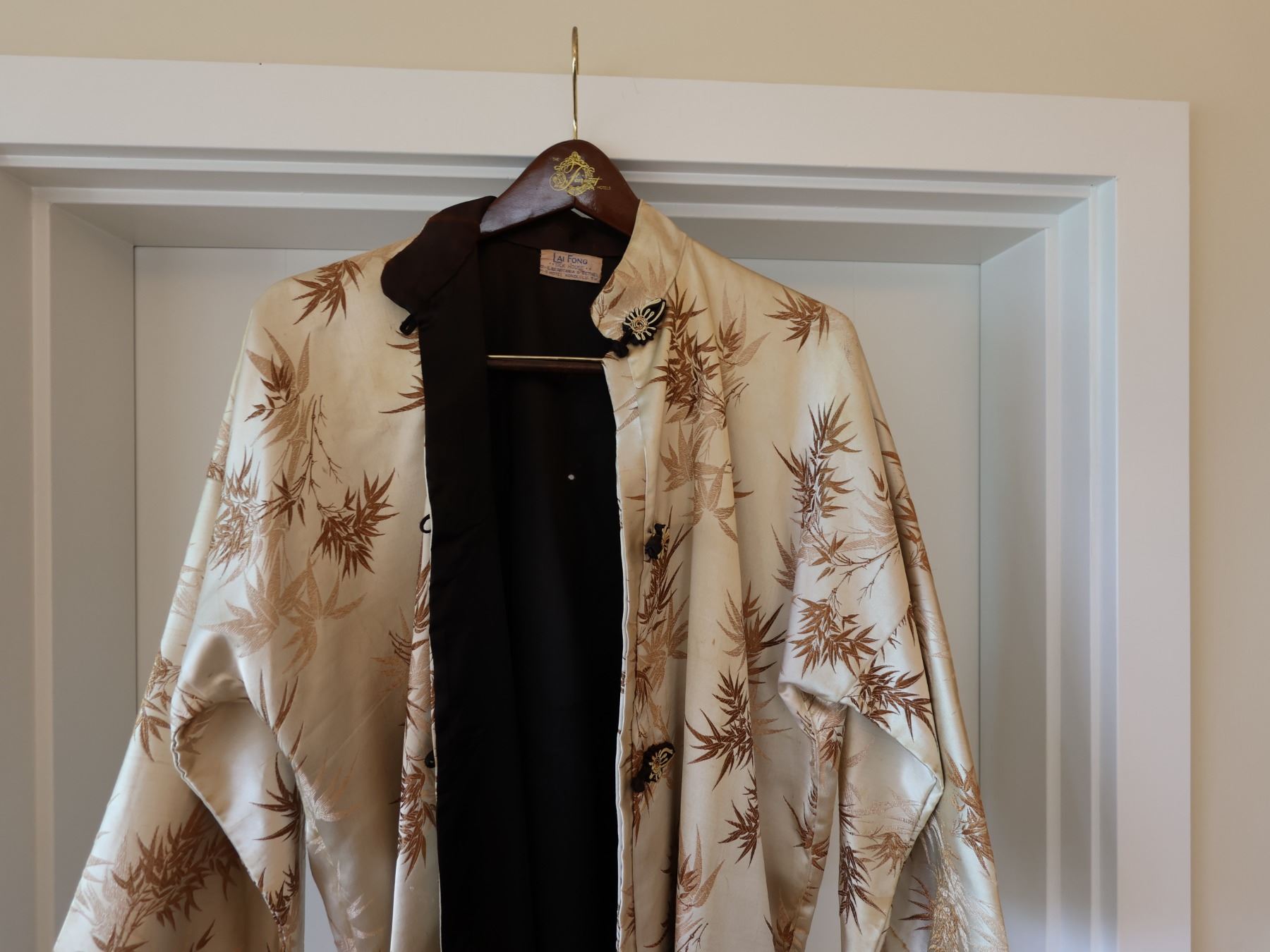 Lai Fong Silk House Bamboo Motif Jacket w/ Brocade Frog Closure