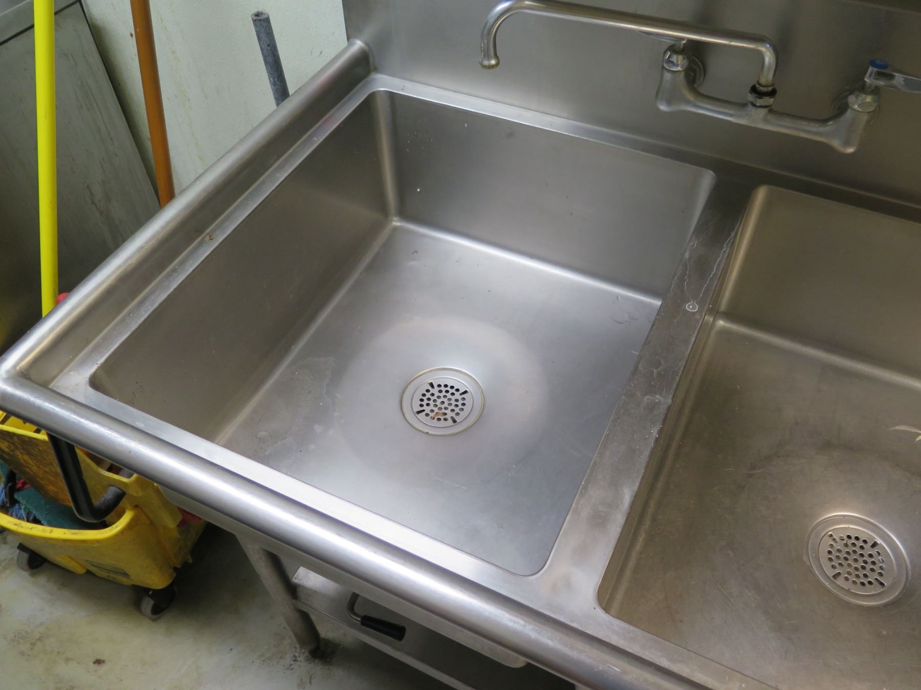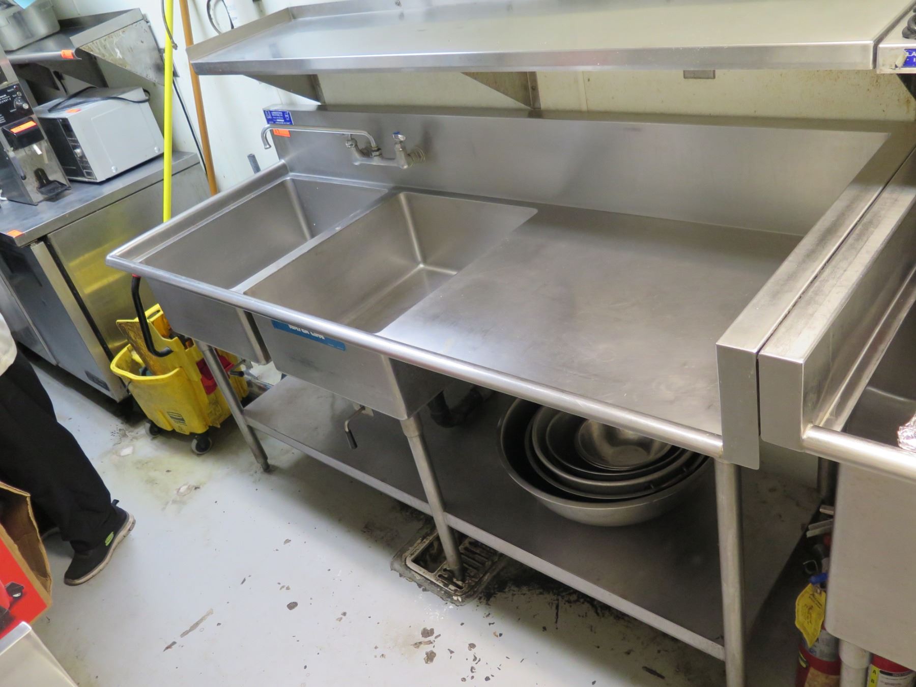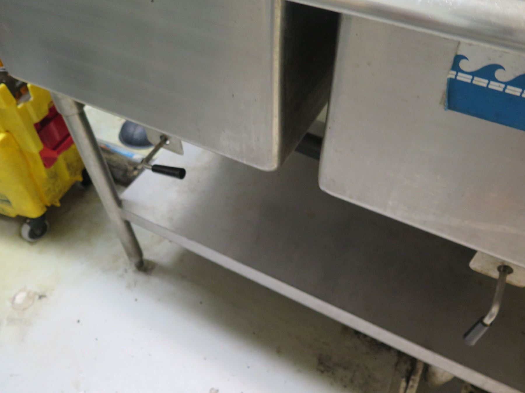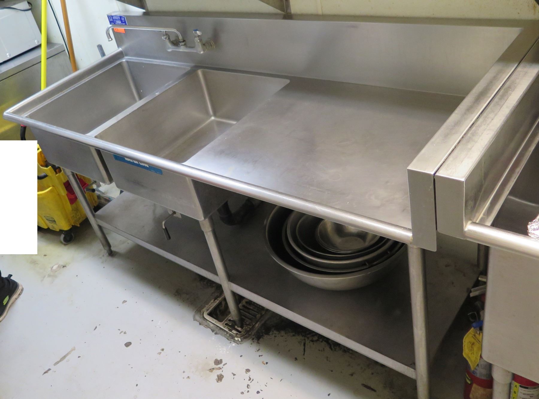 Lambertson Industries Metal Double-Basin Commercial Sink w/ Drainboard & Undershelf 78" x 30" x 37"H (contents not included).