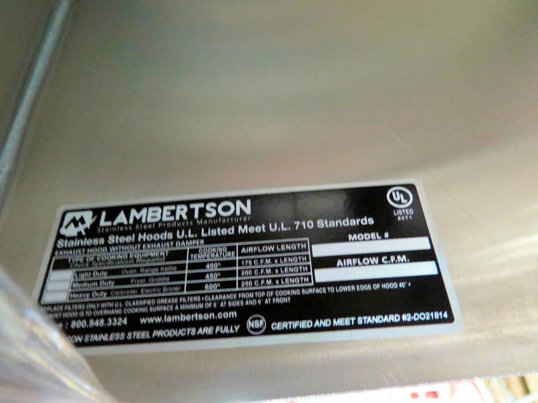 Lambertson Stainless Steel Exhaust Hood 53" x 48" x 21"