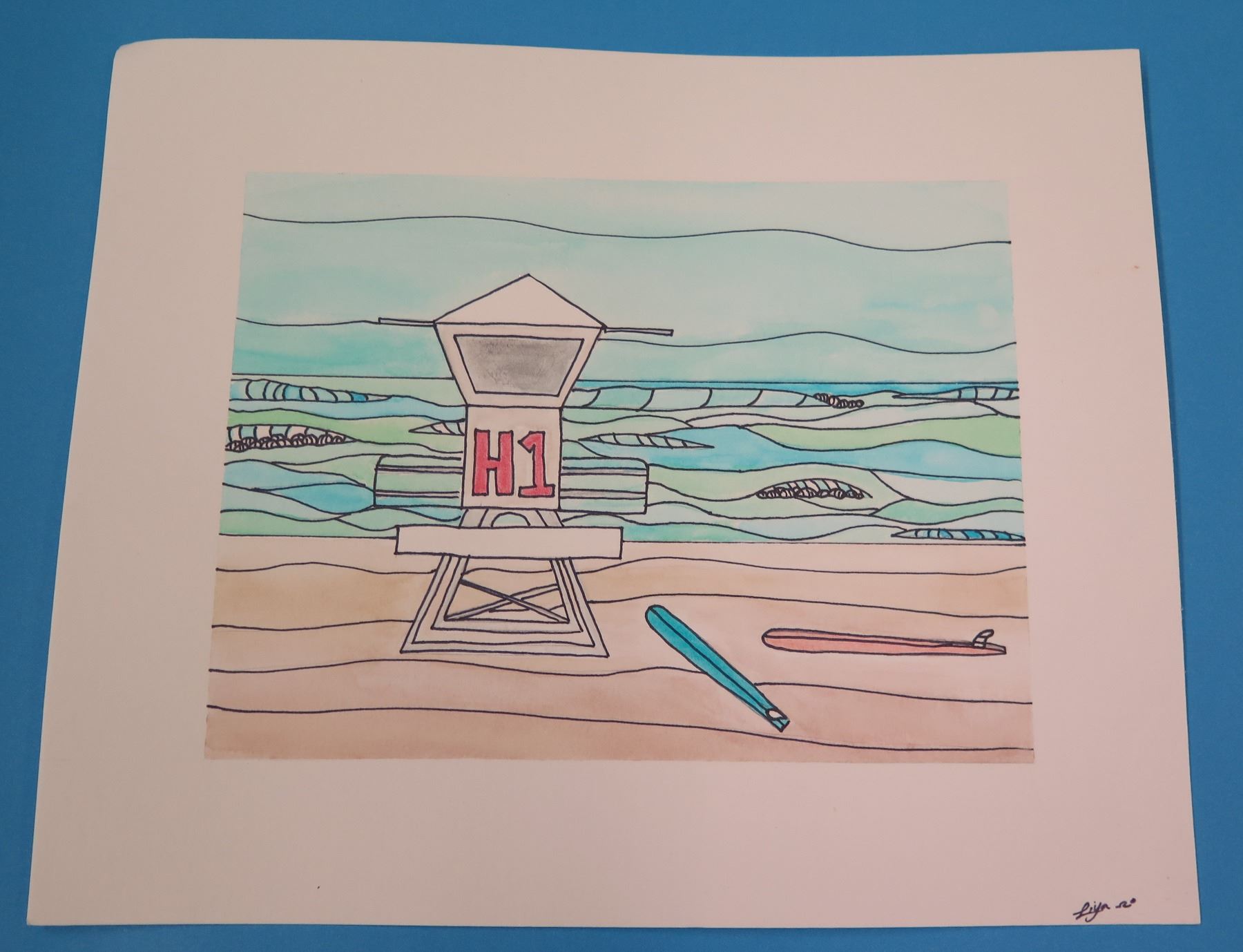 Landscape Artwork Signed by Artist 'Liya' 12"x9"