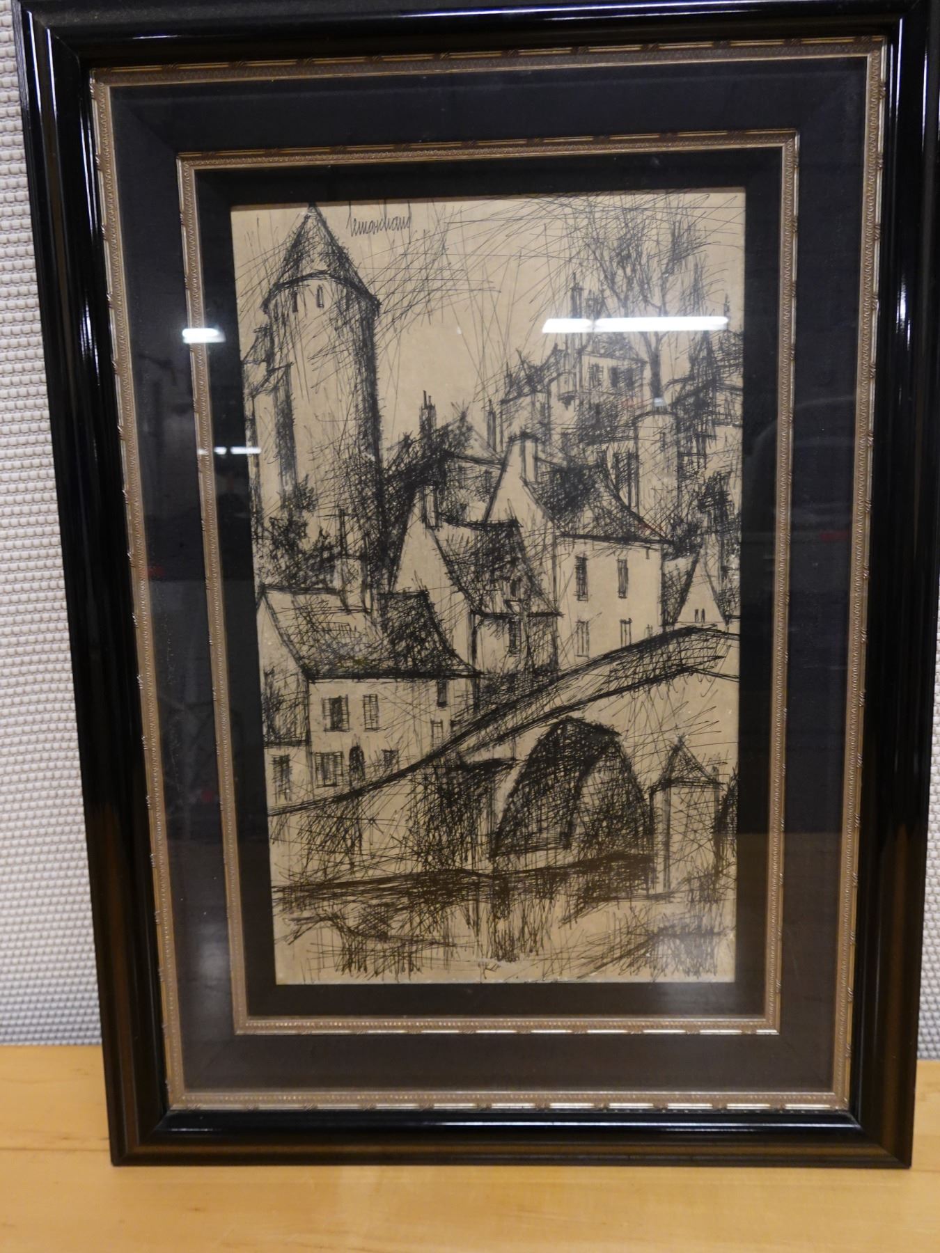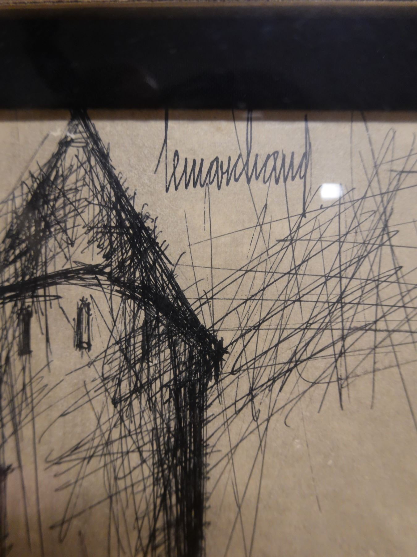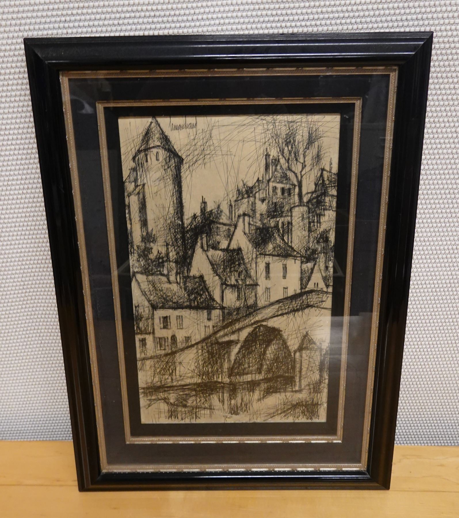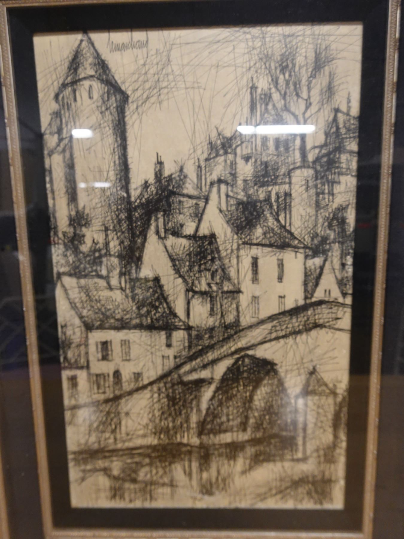 Landscape Scene Sketch Signed by Artist Lemarchand (?), Framed 19" x 26"
